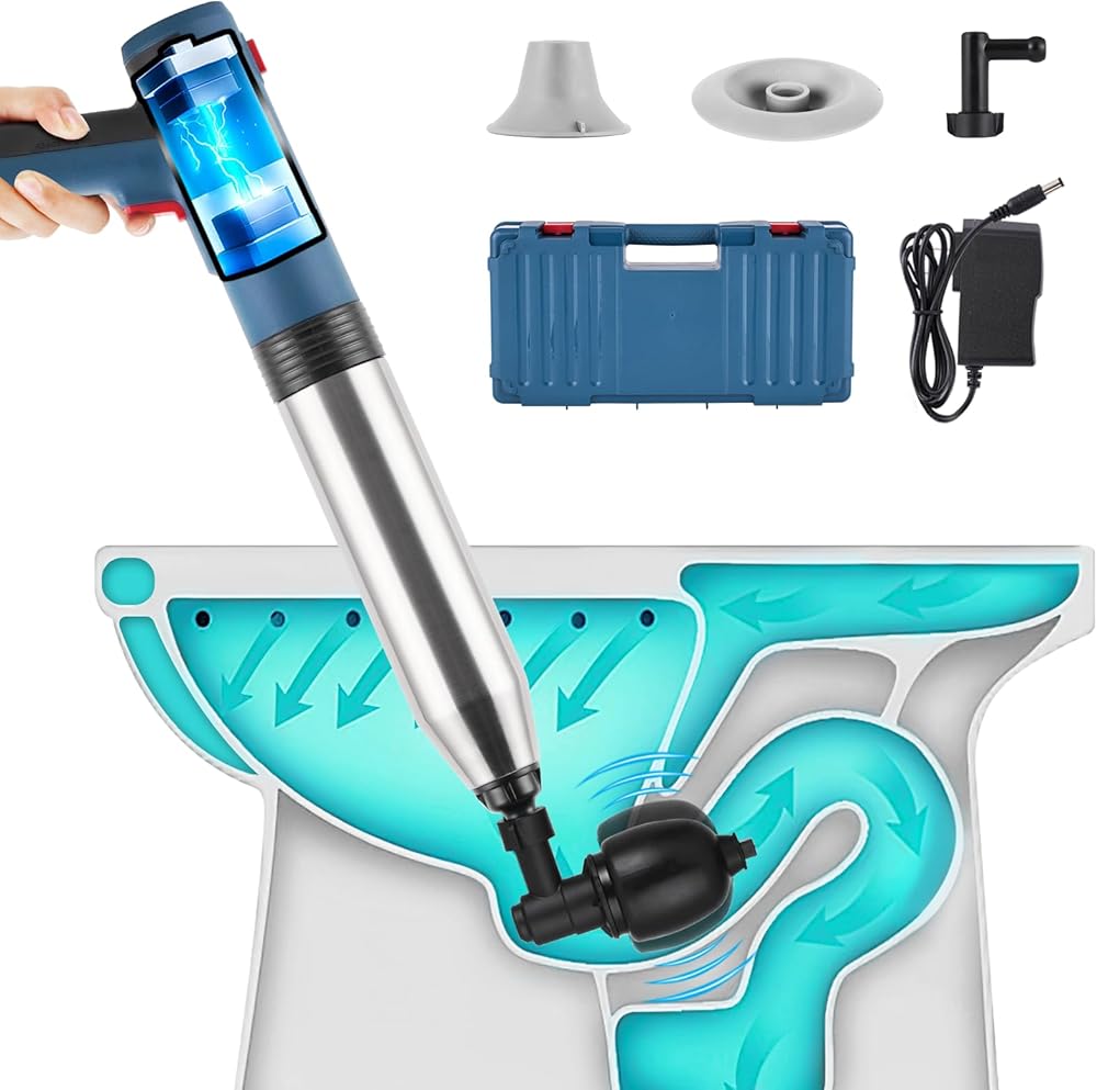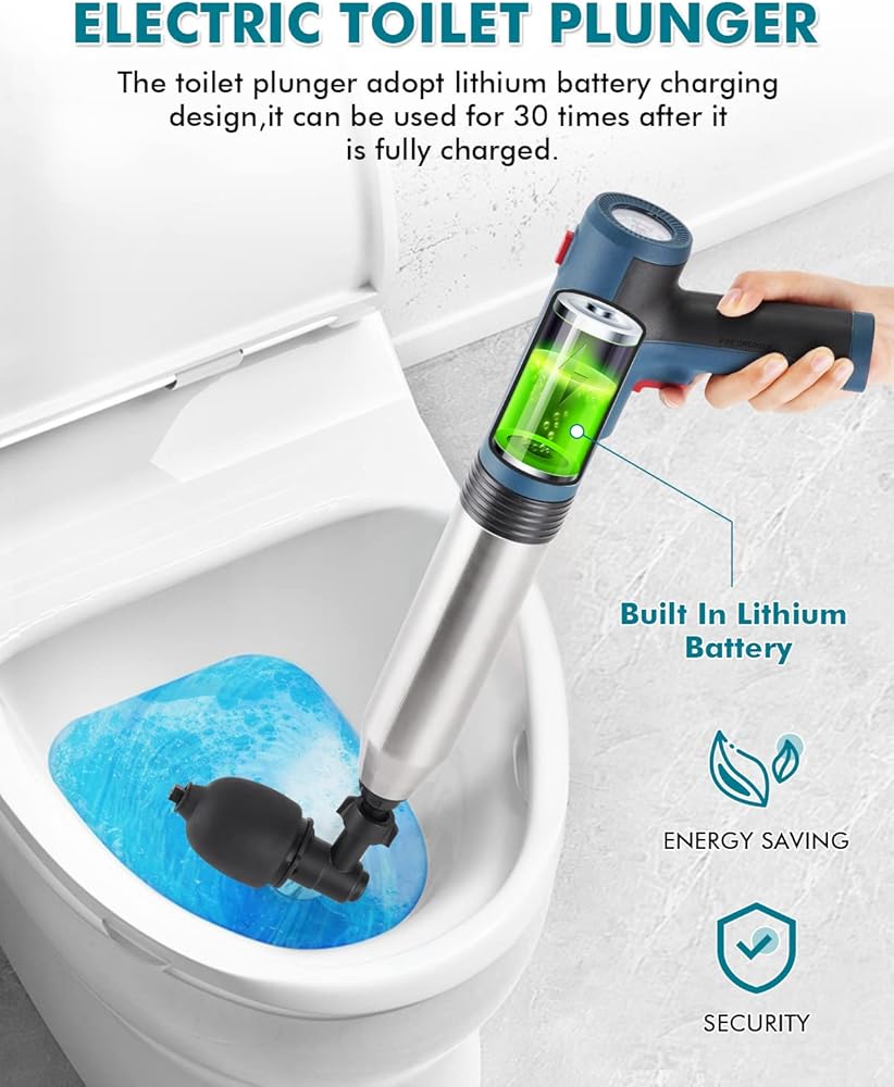 2.[تصميم الضغط العالي]-- يستخدم مكبس المرحاض الكهربائي مبدأ الضغط العالي، والذي يمكنه بسهولة وبسرعة إزالة الانسداد في خط الأنابيب. إنه سهل الاستخدام، وليس هناك حاجة لاستدعاء السباك. إنه أكثر ملاءمة من مكبس المرحاض وثعبان المرحاض ومسمار المرحاض.