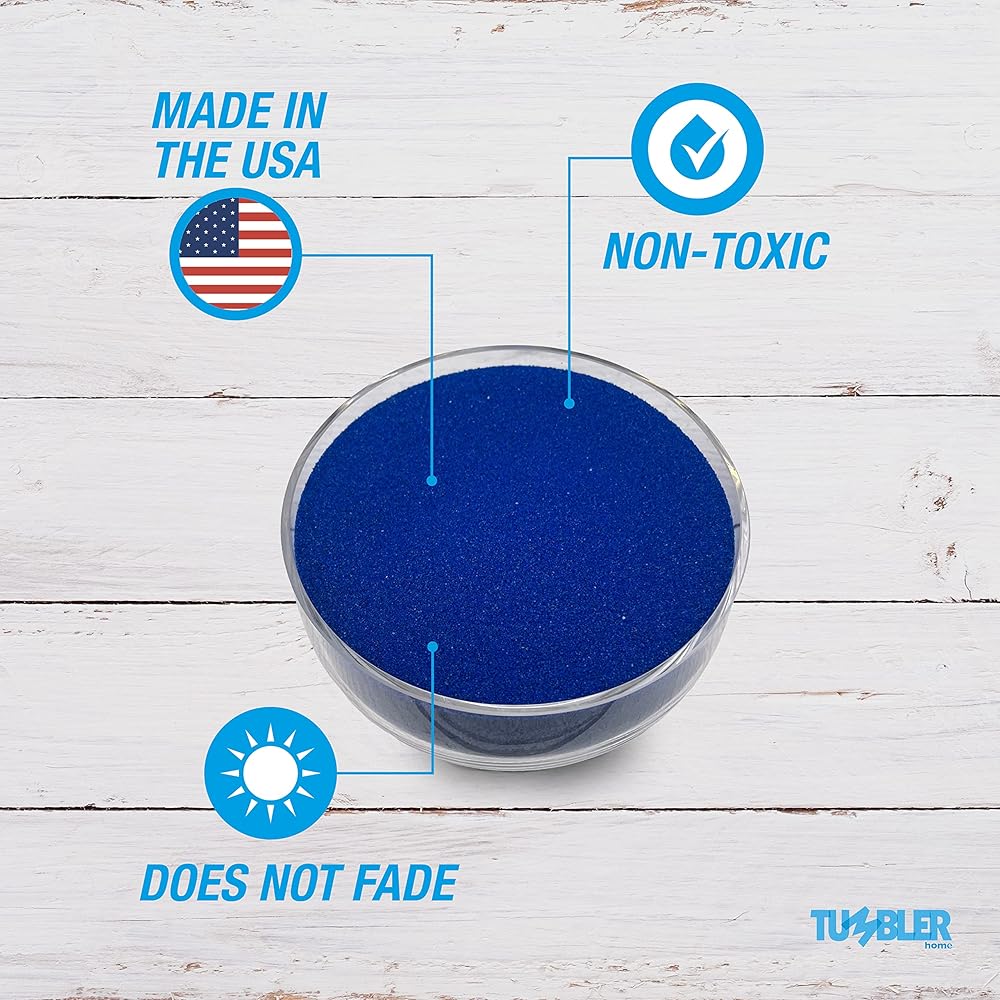 Blue Sand For Crafts - حقيبة Tumbler Home المكونة من 2 رطل من الرمل الناعم مثالية لجميع مشروعاتك الفنية والفنية الرملية. استخدم رملنا المزخرف لإنشاء قطعة مركزية جميلة في وعاء زجاجي أو مزهرية. قم بإقرانها مع شمعة أو كأس البحر والأصداف وغيرها من الحرف اليدوية من Tumbler Home للحصول على تصميم فريد حقًا.