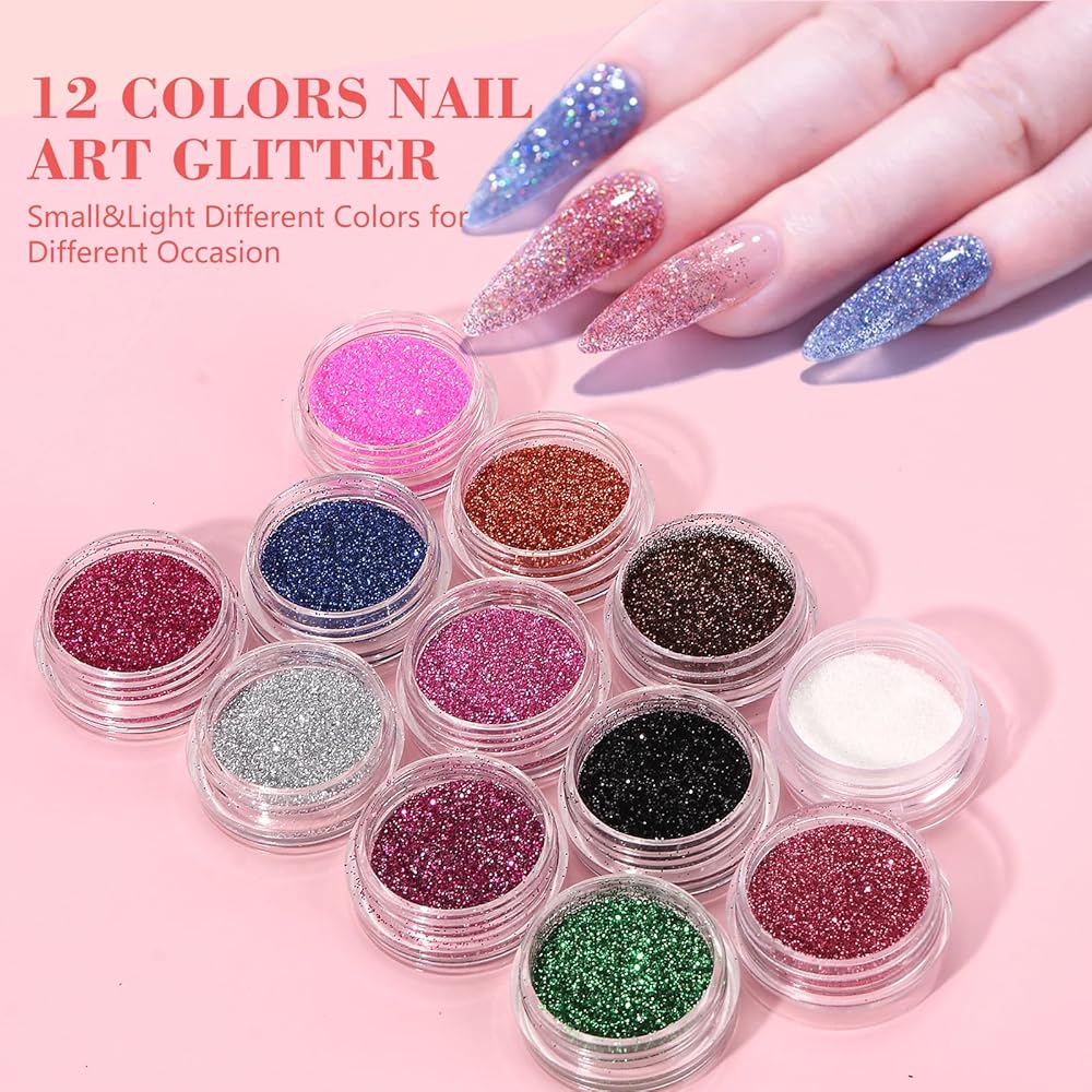 مجموعة أدوات أظافر أكريليك احترافية للمبتدئين - تأتي هذه المجموعة مع يد تدريب على الأظافر ومسحوق أكريليك (شفاف/أبيض/زهري)، غراء أظافر، كوب زجاجي، ألوان متنوعة من حجر الراين، اللؤلؤ، أطراف فرنسية، زيت تنشيط الزوائد اللحمية، فرشاة تنظيف، مبرد أظافر، عازل
