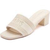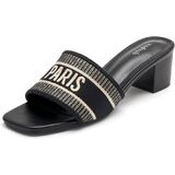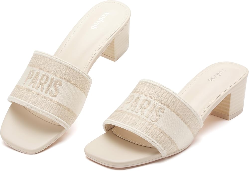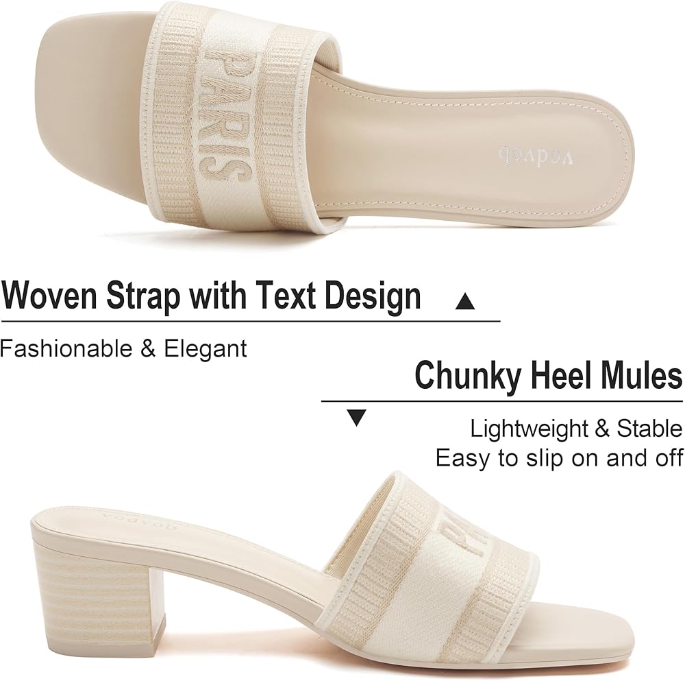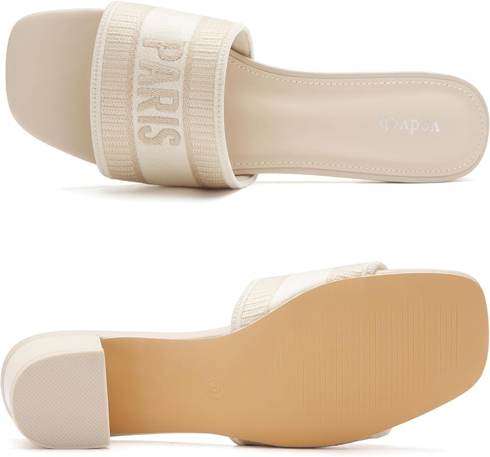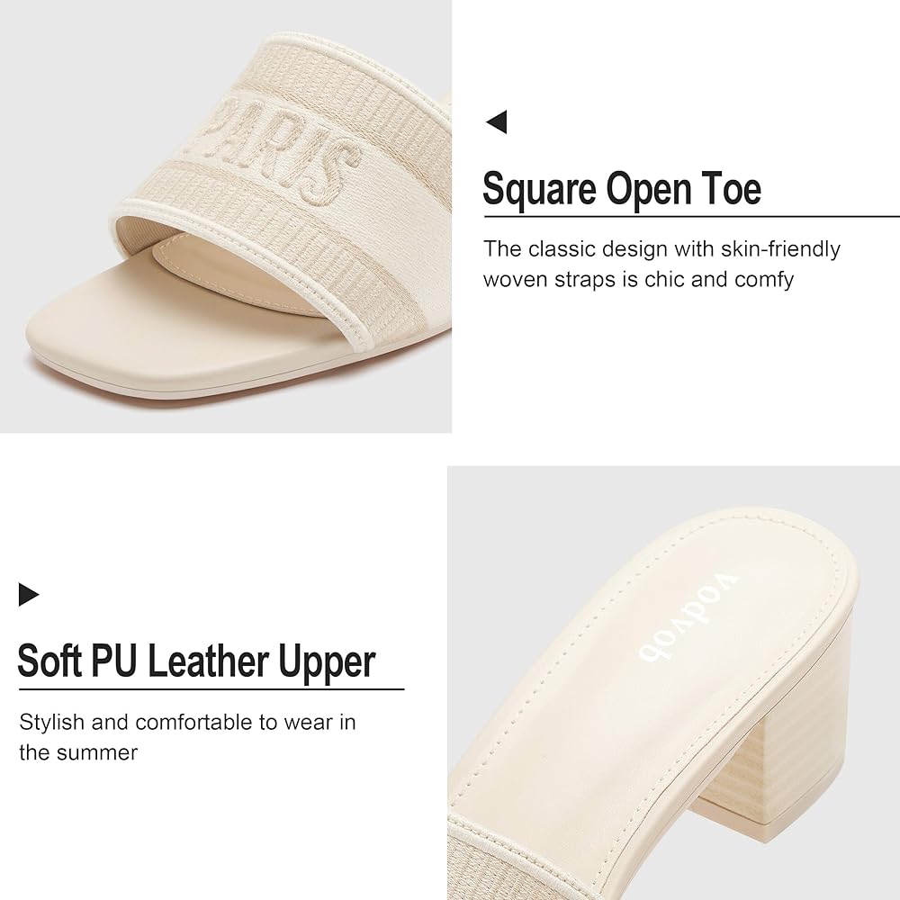 صنادل Vodvob النسائية بكعب منخفض مكتنز ومفتوحة عند الأصابع سهلة الارتداء على الكعب، صنادل منسوجة مطرزة، شباشب صيفية أنيقة منزلق