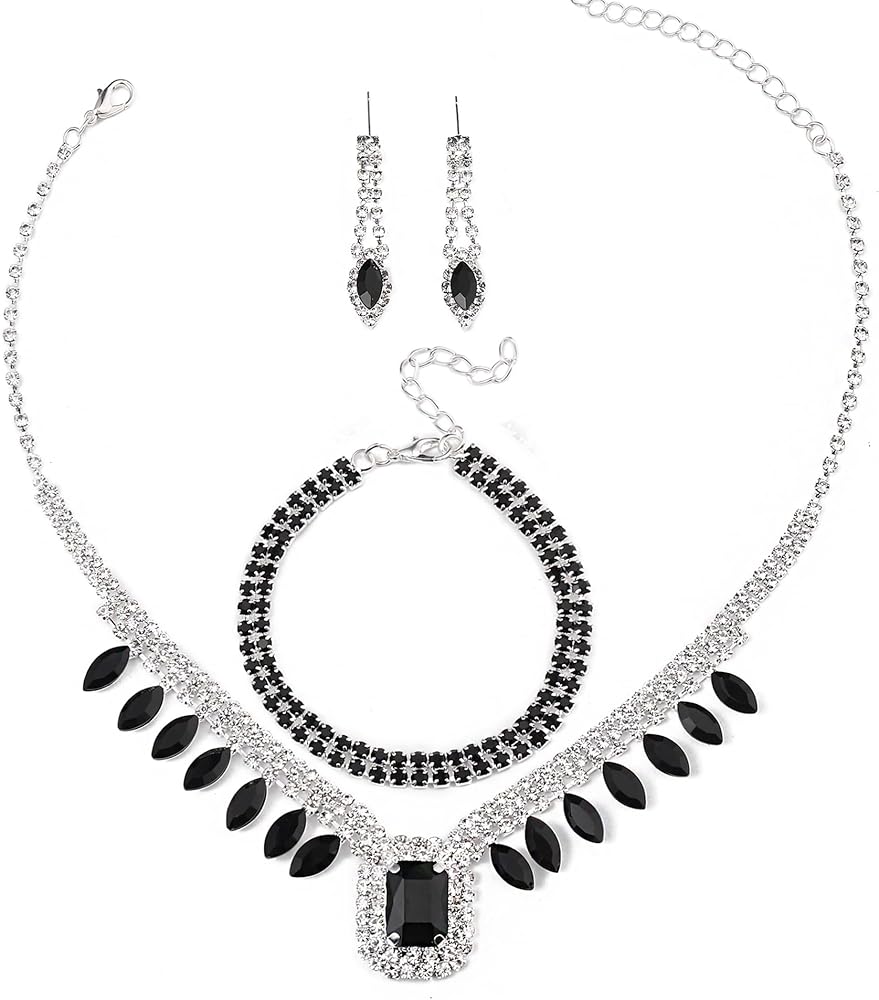 ☀ مجموعة مجوهرات مذهلة: طقم قلادة وأقراط بتصميم الماس على شكل قطرة الماء مع سوار لامع. سو رقيق وجميل، هو إكسسوار مثالي لحضور حفلة أو مأدبة، وسيفوز بالتأكيد بالكثير من الإطراء.