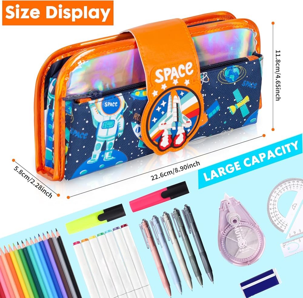 سعة كبيرة: الأبعاد: 8.97 × 4.33 × 2.28 بوصة (22.8 × 11 × 5.8 سم). يمكن أن يساعدك أيضًا في تنظيم مستلزماتك المدرسية بشكل جيد جدًا. إنها واسعة بما يكفي لتخزين وتنظيم أغراضك. مساحات واسعة لتناسب أقلام التحديد والمسطرة والممحاة، وحجرة صغيرة أخرى للأشياء الصغيرة أو الملحقات، و24 فتحة قلم للأقلام أو أقلام الرصاص المستخدمة بشكل متكرر.