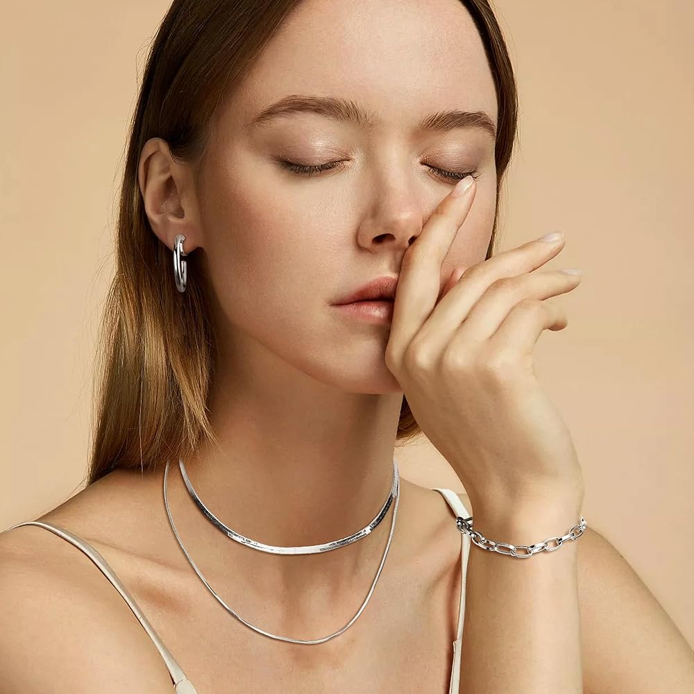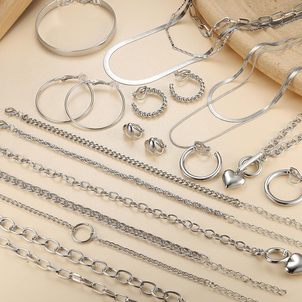 مجموعة مجوهرات ذهبية: مجموعة مجوهرات نسائية تحتوي على 3 قطع قلادات سلسلة ذهبية، 8 قطع أساور سلسلة ذهبية و4 أزواج مشبك ذهبي على الأقراط، مجموعة مجوهرات متطابقة للنساء.