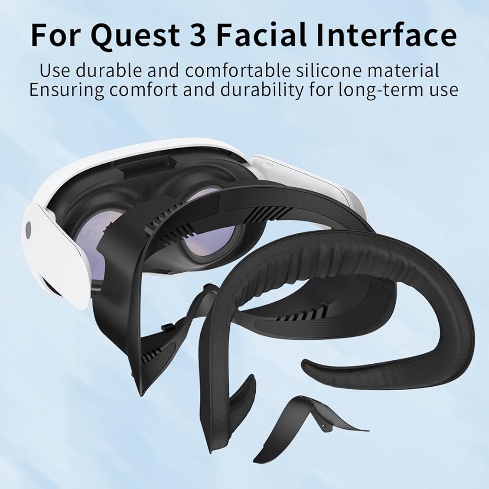 واجهة وجه من السيليكون RGEEK لـ Quest 3، غطاء وسادة للوجه مع وسادة من إسفنج البولي يوريثان، غطاء وجه وسادة أنف خفيفة مضادة للتسرب لملحقات Quest 3