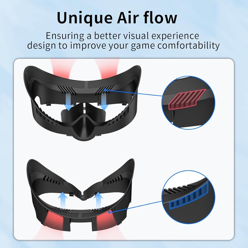 • 【مادة عالية الجودة】تستخدم واجهة الوجه Quest 3 مادة السيليكون المتينة والمريحة، مما يضمن الراحة والمتانة للاستخدام طويل الأمد.