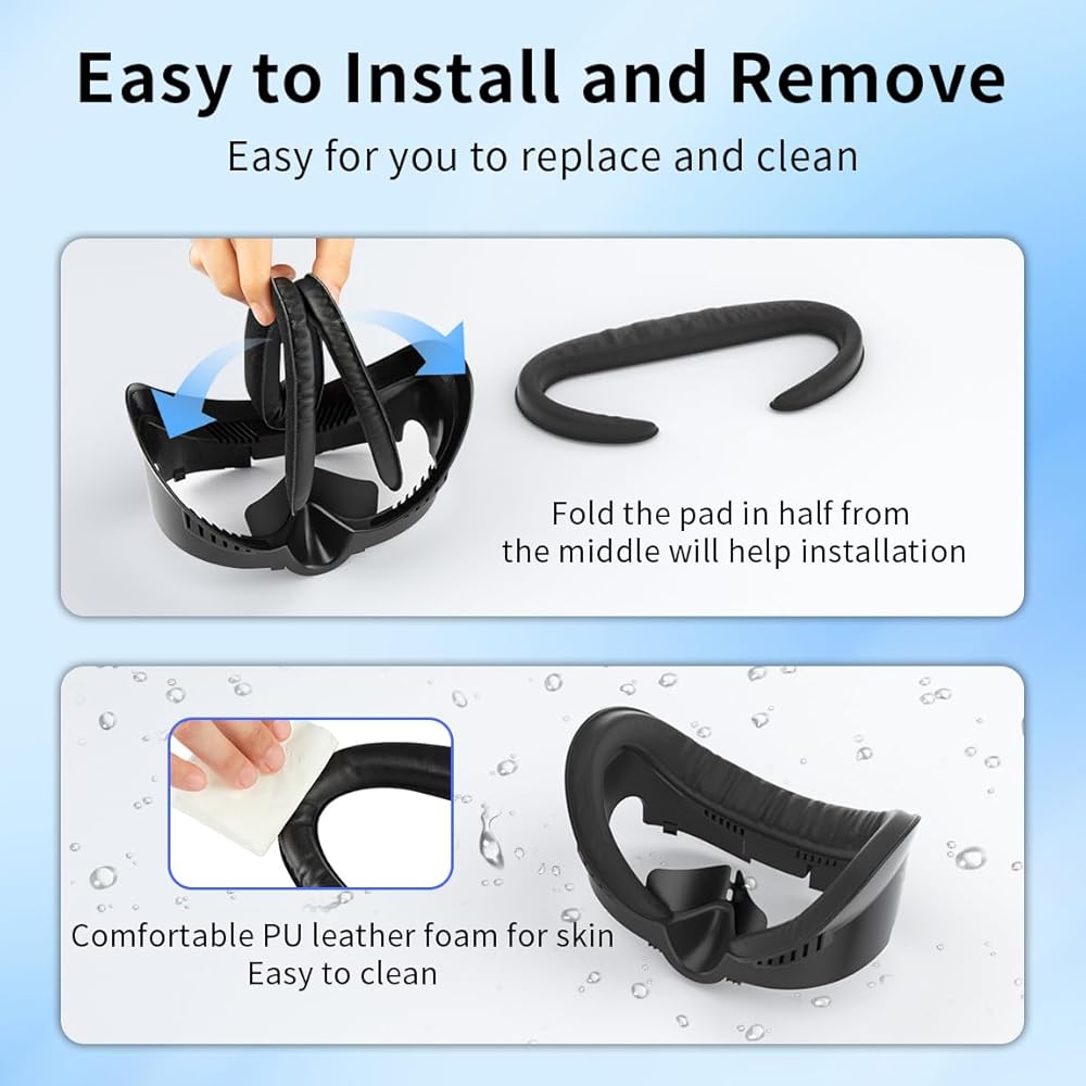 • 【سهلة الاستخدام】 تم تصميم واجهة الوجه Quest 3 لتكون سهلة التثبيت والإزالة، مما يجعل من السهل عليك استبدالها وتنظيفها حسب الحاجة.