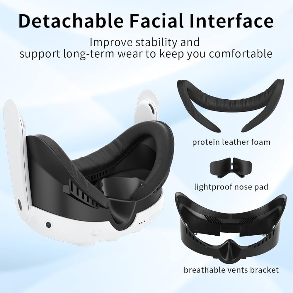 • 【توافق قوي】سواء كنت تستخدم Quest 3 للألعاب أو مشاهدة الأفلام أو غيرها من تجارب الواقع الافتراضي، فإن واجهة الوجه هذه متوافقة مع Quest 3، مما يوفر لك راحة وانغماسًا أفضل.