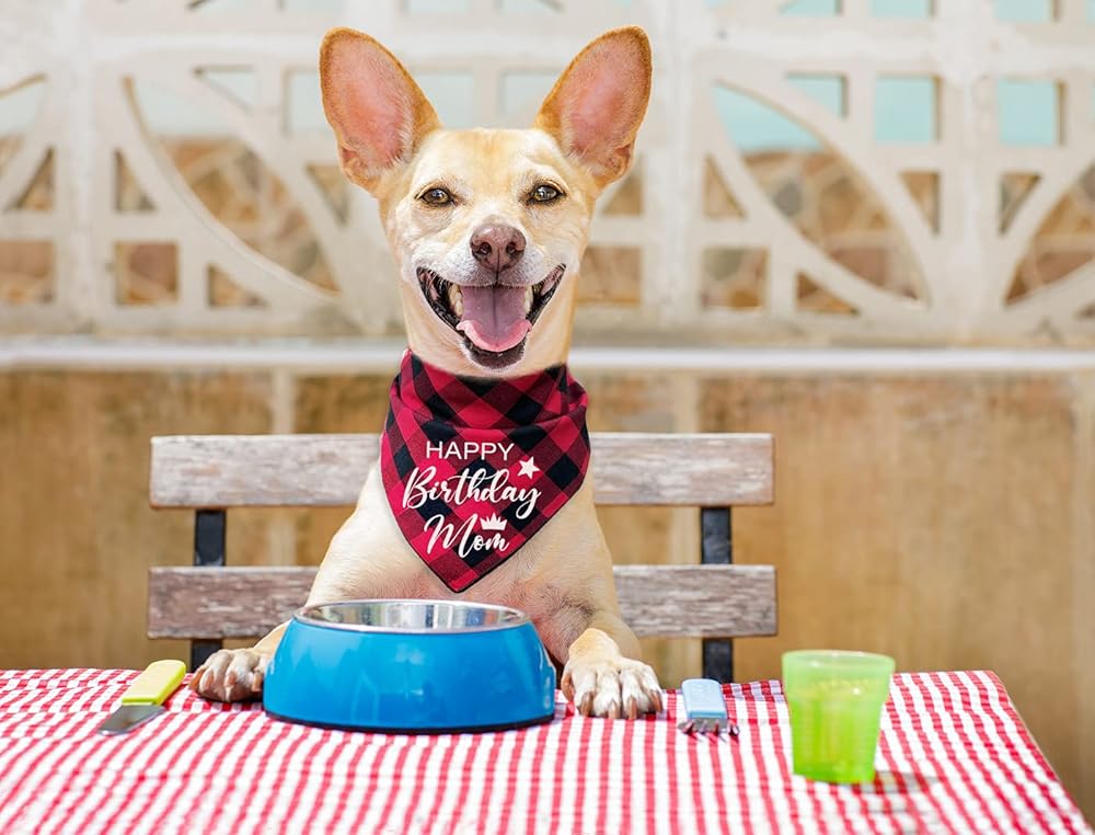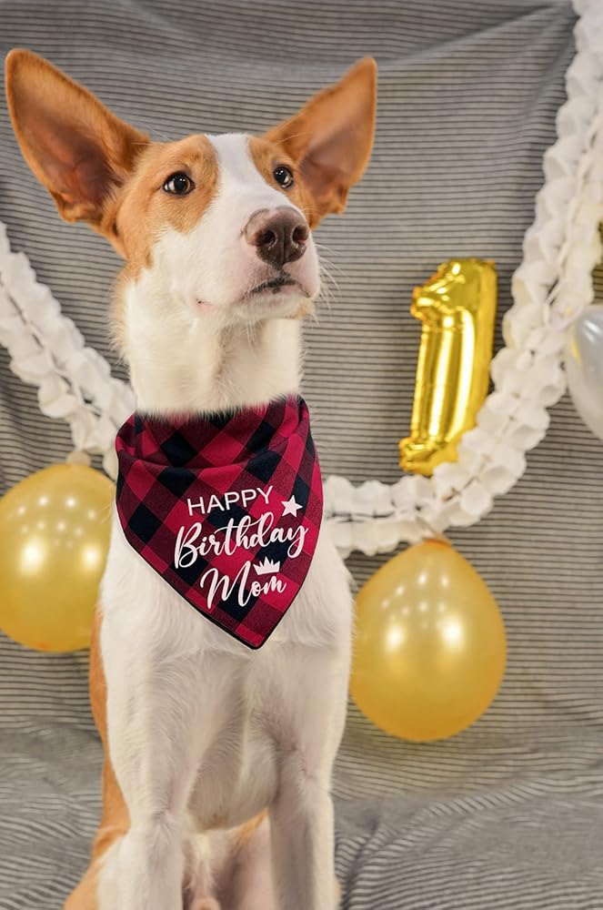 مضحك لطيف القطن الأحمر منقوشة عيد ميلاد سعيد أمي كلب عصابات، أمي الكلب عيد ميلاد مثلث المرايل لمحبي الكلب، الكلب الحيوانات الأليفة عيد ميلاد حزب الدعامة الزينة لوازم الملحقات هدية