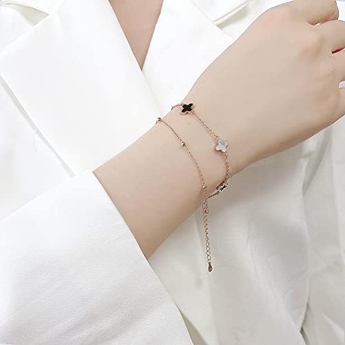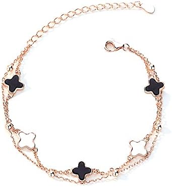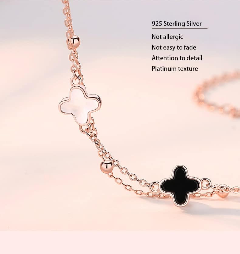 الفضة الإسترلينية 925: هذا السوار ذو الأربع أوراق البرسيم مصنوع من الفضة الإسترلينية 925، وليس عرضة للحساسية. مرصع بعرق اللؤلؤ الطبيعي والعقيق الأسود، يظهر بريقًا مختلفًا تحت ضوء مختلف، كل منتج فريد من نوعه.