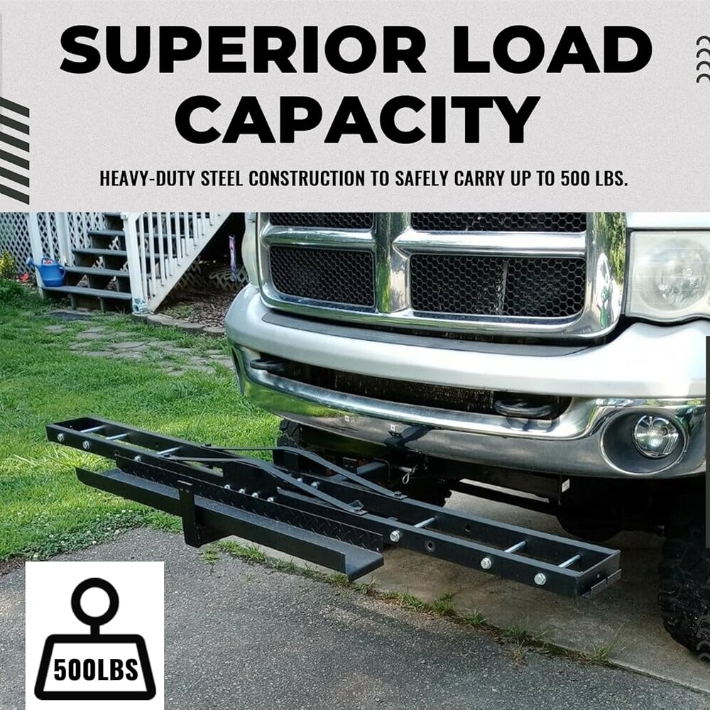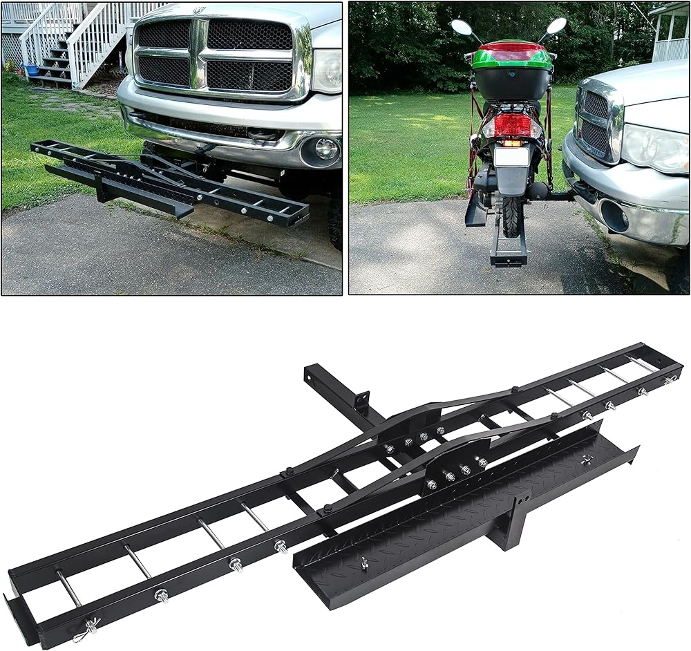 سعة تحميل فائقة: هيكل فولاذي شديد التحمل لحمل ما يصل إلى 500 رطل بأمان. يساعد التصميم المنحدر الفريد على دفع الدراجات النارية والدراجات الترابية والدراجات البخارية إلى الحامل. يتم ضمان الاستخدام الخارجي عالي الكثافة بواسطة المادة القوية.