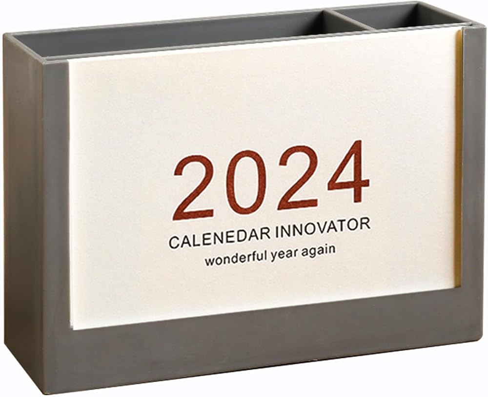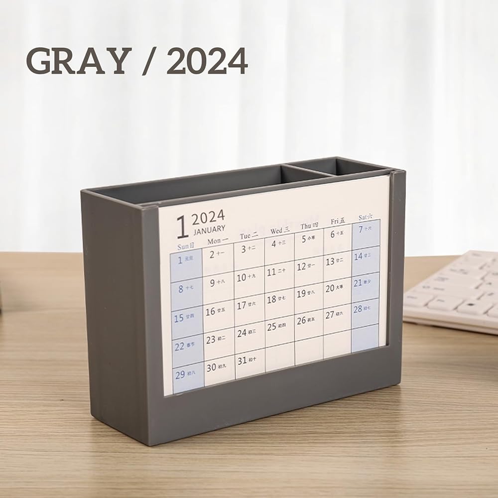 حامل أقلام 2024 تقويم مكتبي لتخزين المكتب وغرفة الدراسة والمدرسة، حامل أقلام رصاص جديد مع تقويم، قلم كوب قلم هيلدر قلم رصاص حامل مكتب منظم المكياج، حافظ على الأشياء في النظام! رمادي 1 قطعة
