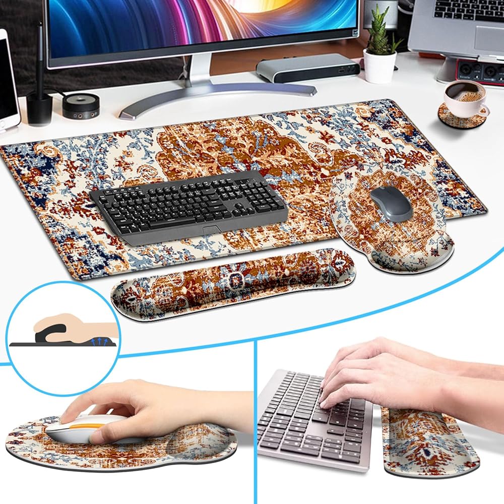 • الهدية المثالية: يمكن استخدام هذه المجموعة بعدة طرق. يمكن استخدام سجادات المكتب الموجودة أعلى المكاتب كمنظم مكتبي رائع مما يجعل سطح مكتبك أنيقًا. بمثابة لوحة مفاتيح ولوحة ماوس لتتمكن من اللعب والعمل. كديكور للمنزل والمكتب بنمط جميل. هدية رائعة لزميلك في العمل أو عائلتك أو أصدقائك أو لنفسك.