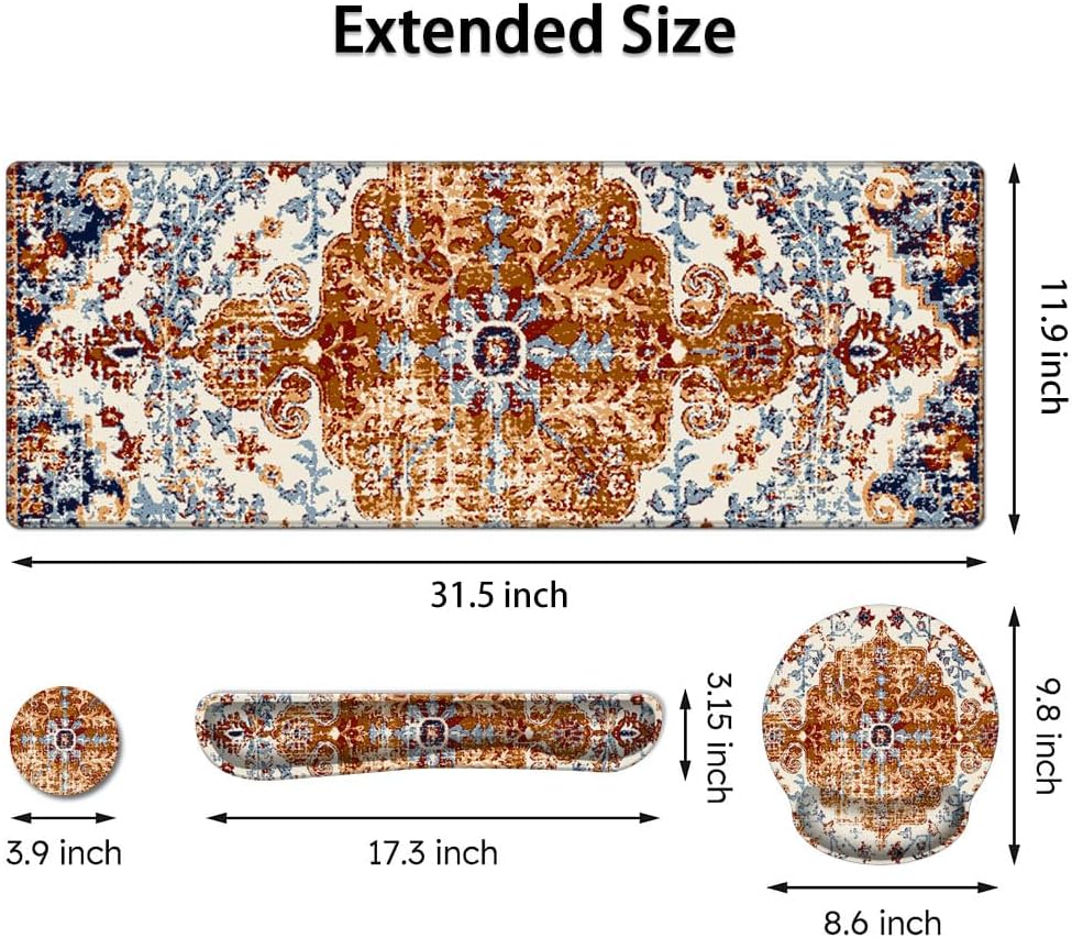 • الشكل والحجم الأمثل: 31.5 بوصة × 11.9 بوصة، مسند المعصم للوحة مفاتيح الكمبيوتر: 17.3 بوصة × 3.15 بوصة، مسند المعصم للفأرة: 8.6 بوصة × 9.8 بوصة، القاعدة: 3.9 بوصة × 3.9 بوصة.