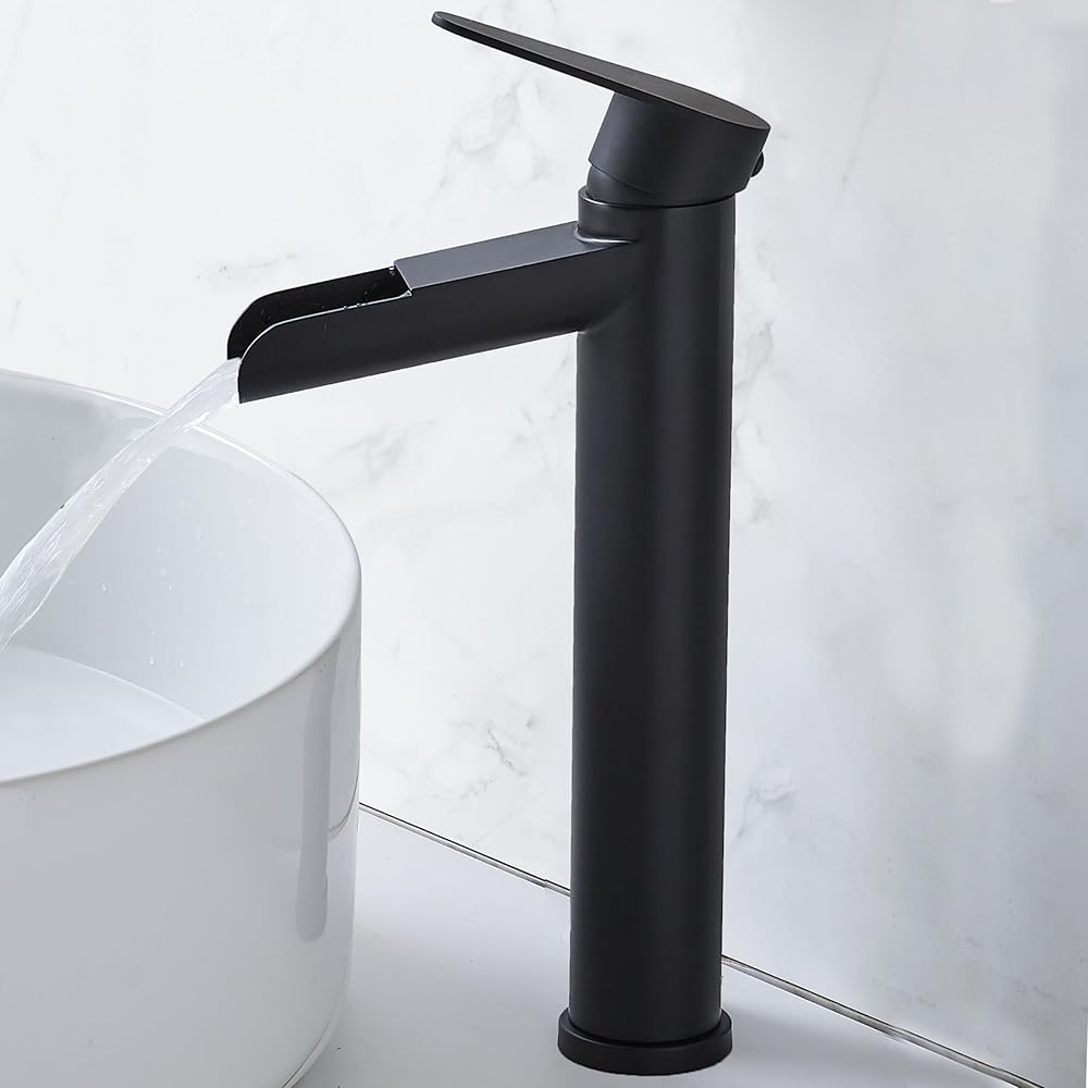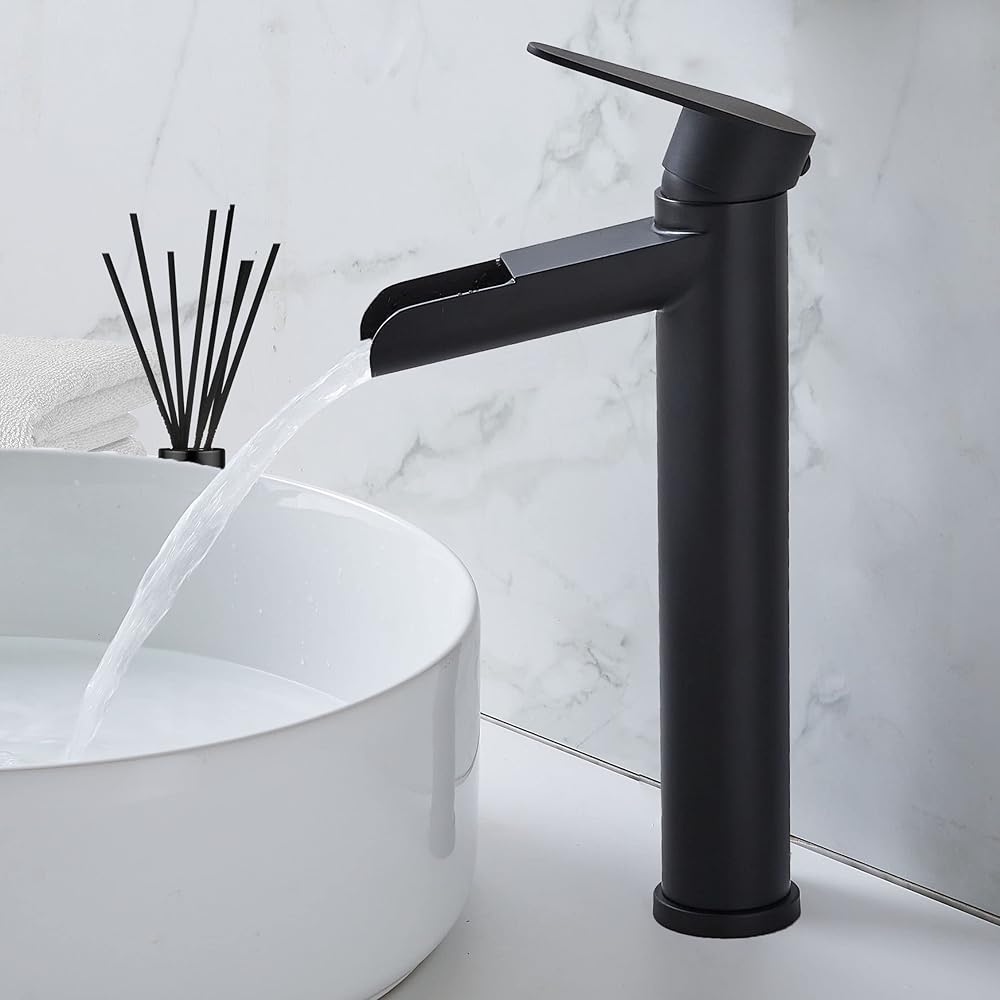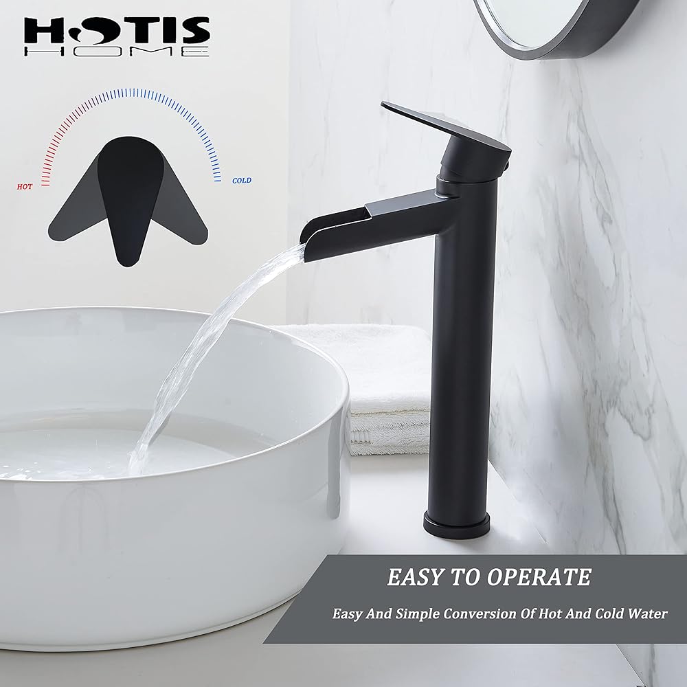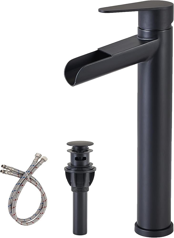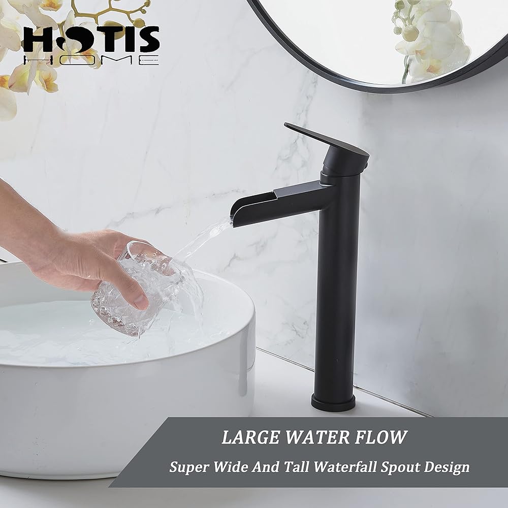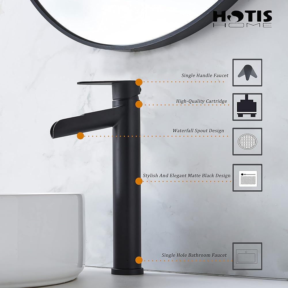 hotis سفينة بالوعة الحنفية، ماتي الأسود صنبور الحمام الشلال، طويل القامة الجسم ثقب واحد مقبض واحد RV صنبور الحمام، مرحاض الغرور وعاء بالوعة صنبور مع استنزاف المنبثقة وخط العرض خراطيم 3/8 "
