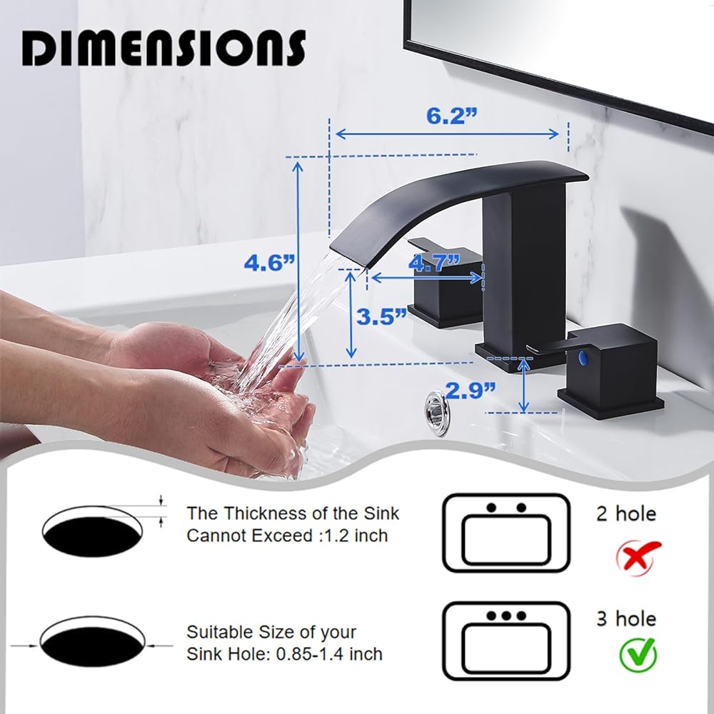 【أبعاد صنبور الحمام باللون الأسود غير اللامع】الارتفاع الإجمالي: 4.6 بوصة؛ ارتفاع الصنبور: 6.2 بوصة؛ وصول الصنبور: 4.7 بوصة