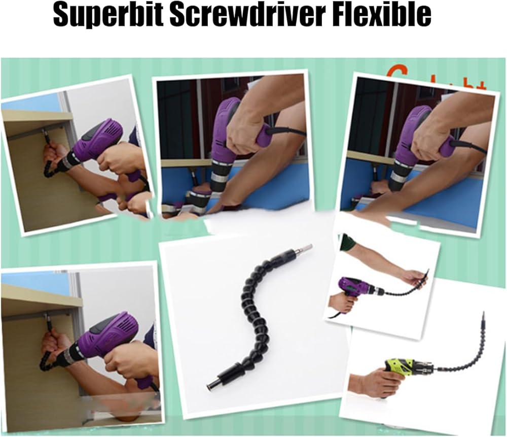 【سهل الاستخدام】مفك البراغي الفائق المرن عالمي في أي اتجاه، مما يسمح لك بالدخول إلى تلك الأماكن الصعبة وإنجاز المهمة بشكل أسهل وأسرع. يتيح الحجم الصغير لقمة المثقاب المرنة سهولة التخزين في صندوق الأدوات أو الجيب الخاص بك.