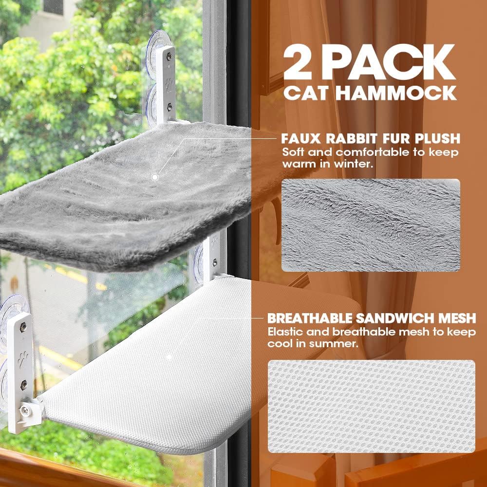 أرجوحة نافذة للقطط مزدوجة الطبقات من ANZOME - تستوعب العديد من القطط، كل منها يحمل 40 رطلاً - موفرة للمساحة ومريحة - مجموعتان مع حمام شمس 360 درجة - إطار PVC وأكواب شفط قوية
