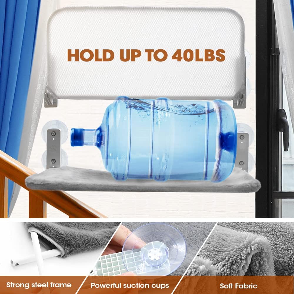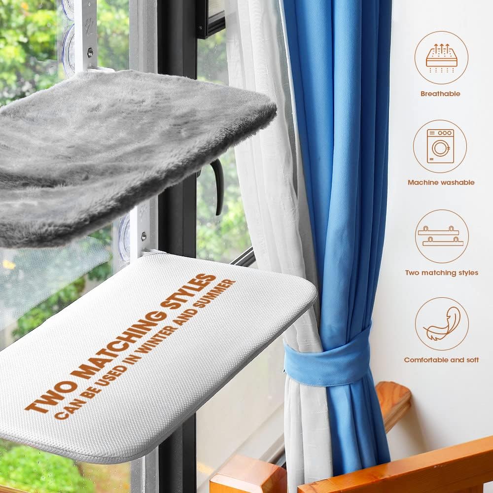 【الراحة】غطاء الأرجوحة ناعم ومريح ويمكن أن يمنع القطط من ارتفاع درجة الحرارة في الصيف. تتضمن العبوة 1 مراتب فخمة و1 قابلة للتنفس. في الشتاء، يمكن أن تؤدي إضافة مرتبة على أرجوحة القطط الأليفة هذه إلى إبقاء القطة دافئة، وبالتالي فإن سرير القطط المثبت بالنافذة سيكون سريرًا جيدًا ومريحًا للقطط.