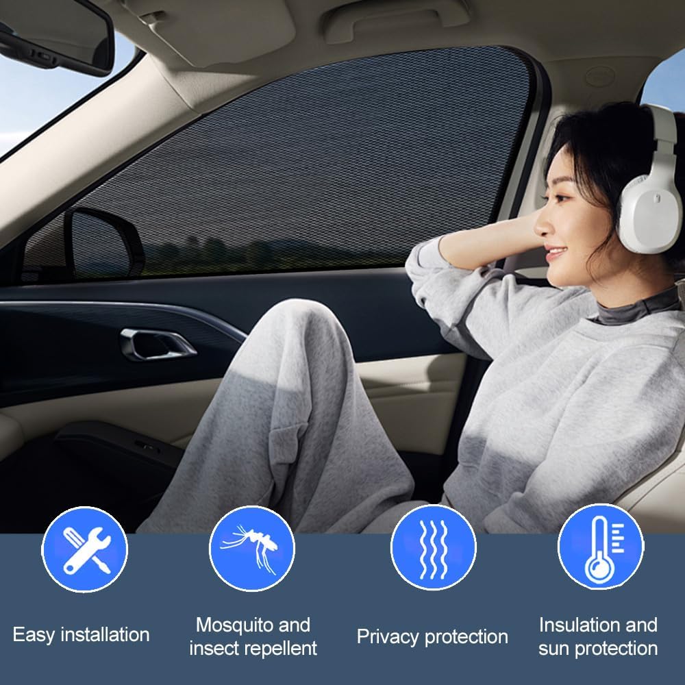 [لا يؤثر على الرؤية والتهوية]: التصميم الشفاف لمظلة الشمس للسيارة الخاصة بالخصوصية يمكن أن يقلل الوهج بشكل فعال، مع الاستمرار في رؤية المنظر من النافذة. توفر أغطية نوافذ السيارة للسيارة الخصوصية رؤية جيدة وتسمح لك بمراقبة العالم الخارجي أثناء القيادة. بالإضافة إلى ذلك، تم تصميم ستائر نوافذ السيارة مع مراعاة التهوية للحفاظ على دوران الهواء في السيارة وتوفير بيئة قيادة مريحة.