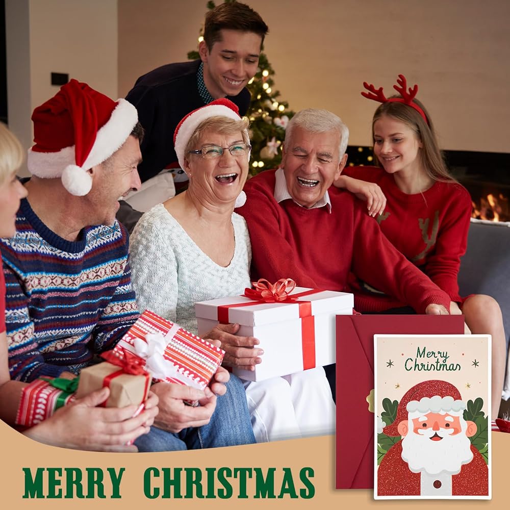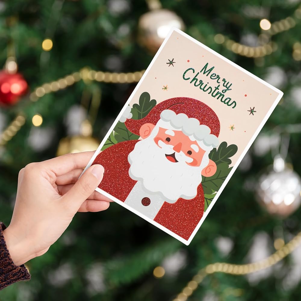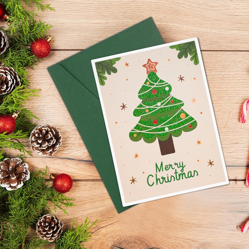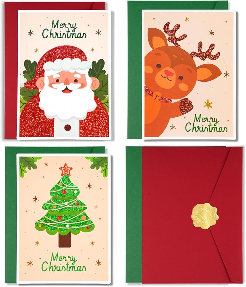 بطاقات عيد الميلاد مع مظاريف AZAZA-مظاريف حمراء مظاريف خضراء (3 تصاميم، 3 بطاقات و4 مظاريف) بطاقات سانتا كلوز، بطاقات شجرة عيد الميلاد، أظرف 5x7 للدعوات