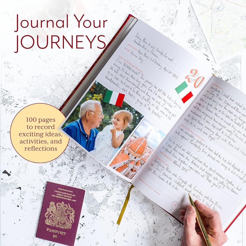 - مجلة السفر - تعكس تجاربك عندما تكون جديدة في ذهنك، وكذلك بمجرد مرور بعض الوقت، مع صفحات اليوميات المضمنة.