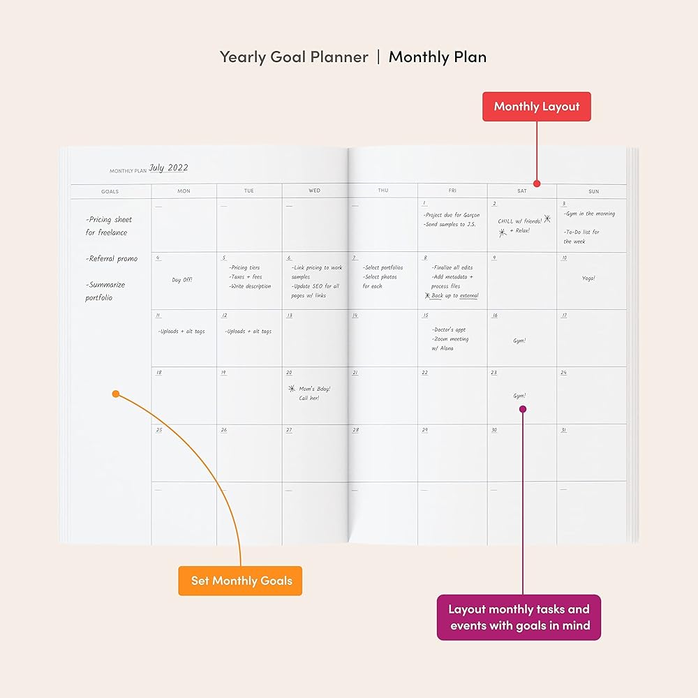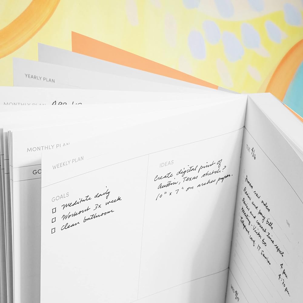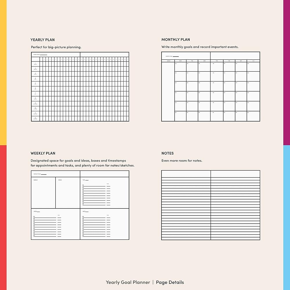 المخطط الإبداعي: مخططنا هو منفذك الإبداعي، وليس فقط للمهام والجداول الزمنية. مع أماكن مخصصة لرسومات الشعار المبتكرة والملاحظات، فهو يدمج التعبير الفني مع التنظيم اليومي. قم بإضاءة إبداعك أثناء البقاء على المسار الصحيح.