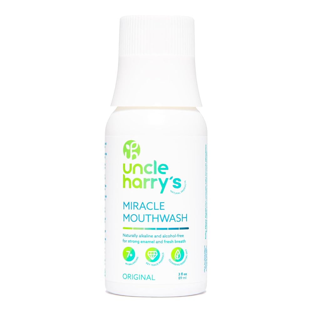 نفس منعش - لا مزيد من رائحة الفم الكريهة. يعمل غسول الفم المعجزة من العم هاري على موازنة مستويات الحموضة في فمك بشكل طبيعي عن طريق تحييد الميكروبات التي تساهم في رائحة الفم الكريهة وجفاف الفم، مما يترك رائحة النعناع منتعشة طوال اليوم. يؤدي استخدامه بانتظام أيضًا إلى تنشيط مظهر أسنانك ولثتك لمساعدتك في الحفاظ على ابتسامة جذابة.
