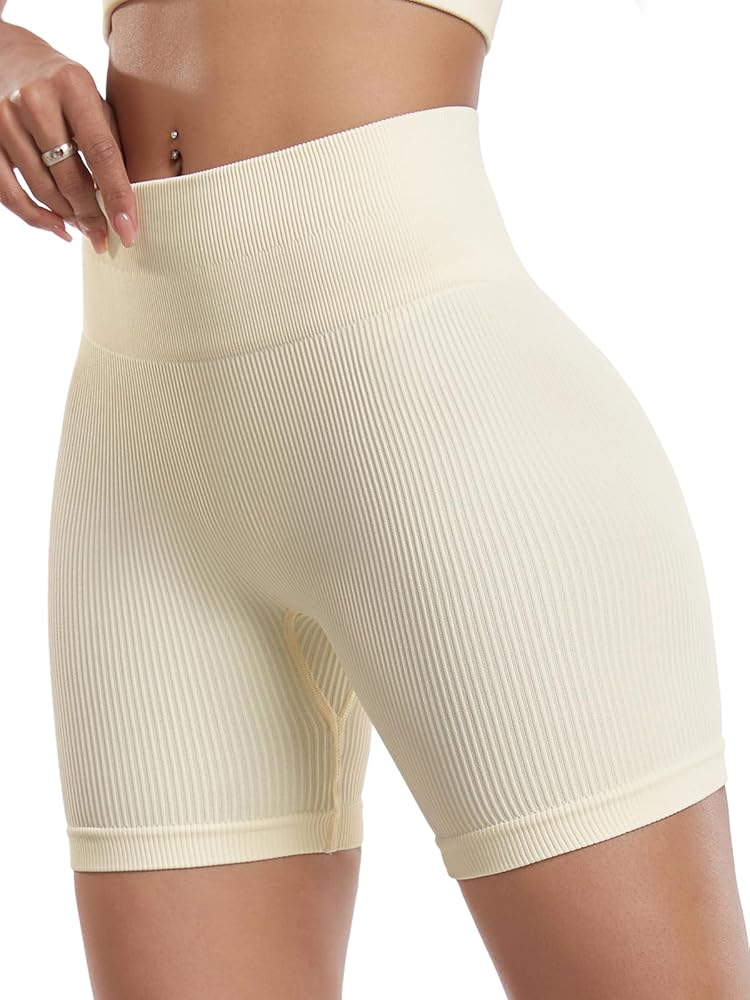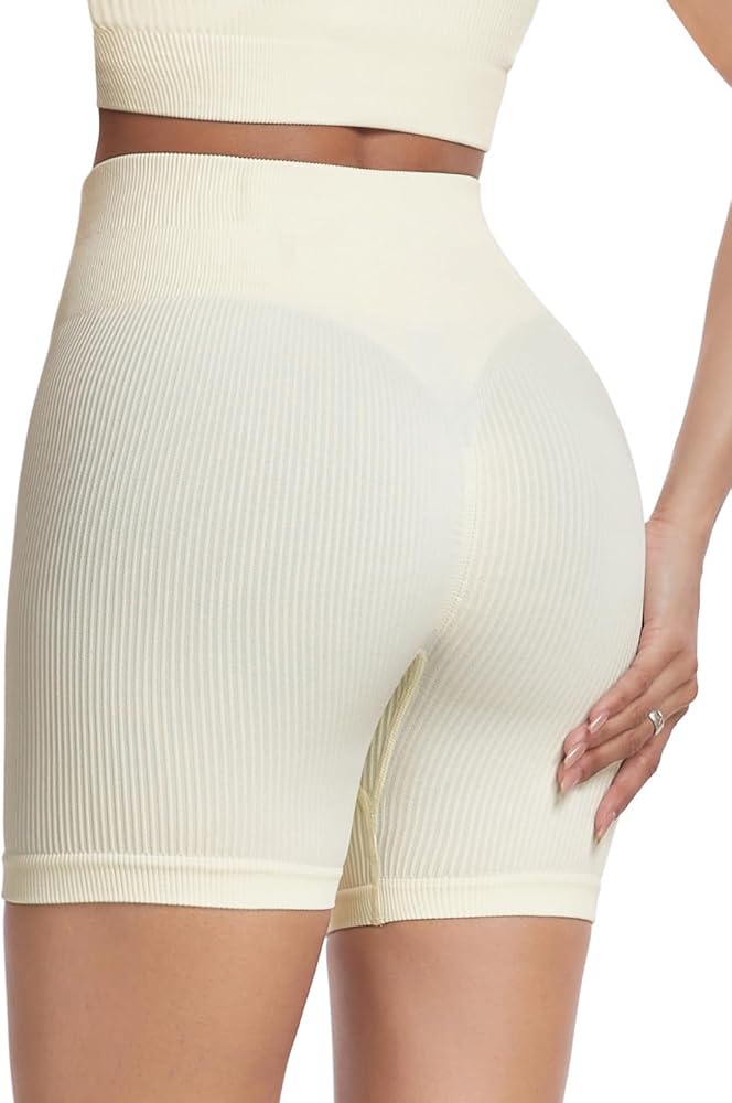 • [تصميم مريح] - عندما ترتدين السراويل القصيرة النسائية ذات الخصر العالي بدون خياطة، لن تنزلق السراويل القصيرة المصنوعة من الألياف اللدنة أثناء التمرين، مما يضمن أنك في حالة مثالية للتمرين!