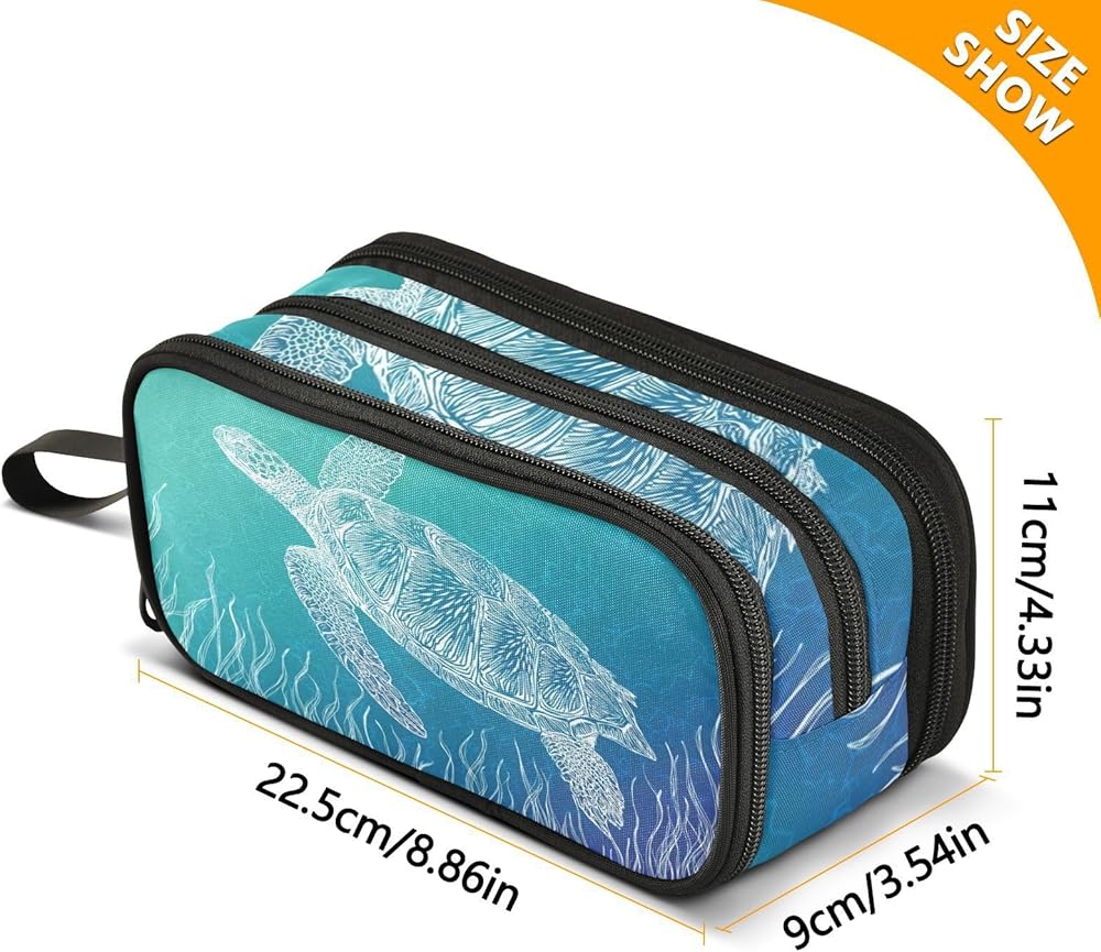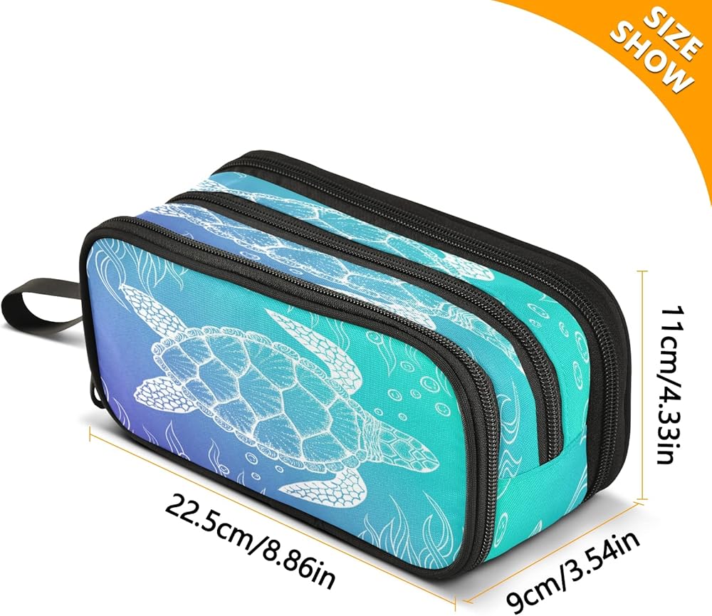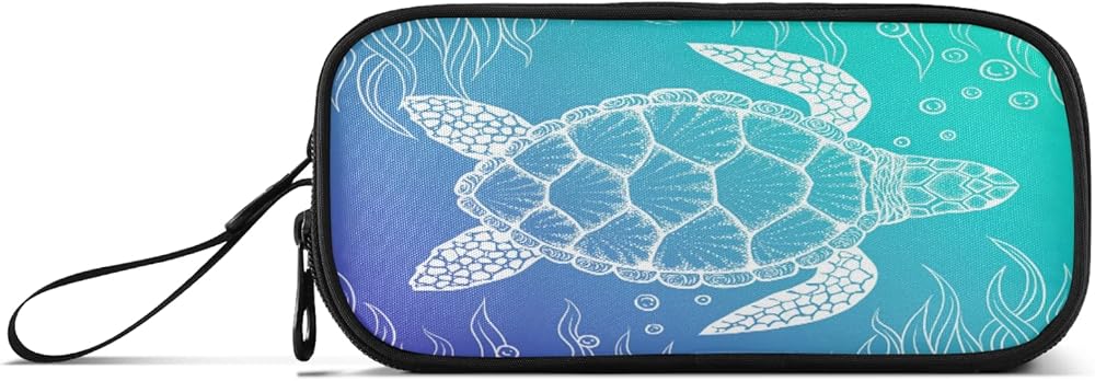 حافظة قلم رصاص ذات سعة عالية من Kcldeci Sea Turtle، حقيبة أقلام رصاص متينة من سلاحف البحر لحيوانات المحيط، حافظة منظمة مع مقبض وحلقة سهلة الإمساك