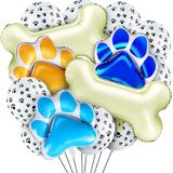 46 قطعة من البالونات ذات طابع الكلب تتضمن 40 قطعة من بالونات اللاتكس بطباعة مخالب الكلب و3 قطع بالونات من رقائق معدنية على شكل عظمة و3 قطع بالونات من رقائق معدنية بطباعة مخالب كلب دعائم لتزيين حفلات أعياد ميلاد الأطفال والحيوانات الأليفة