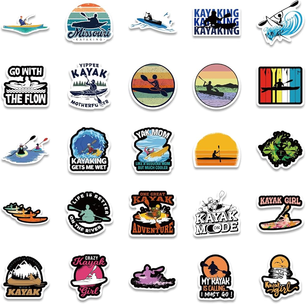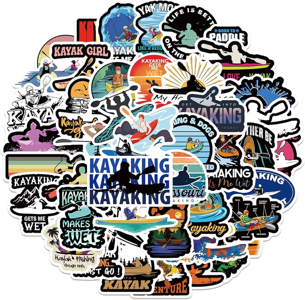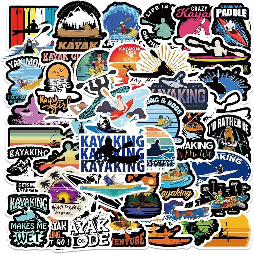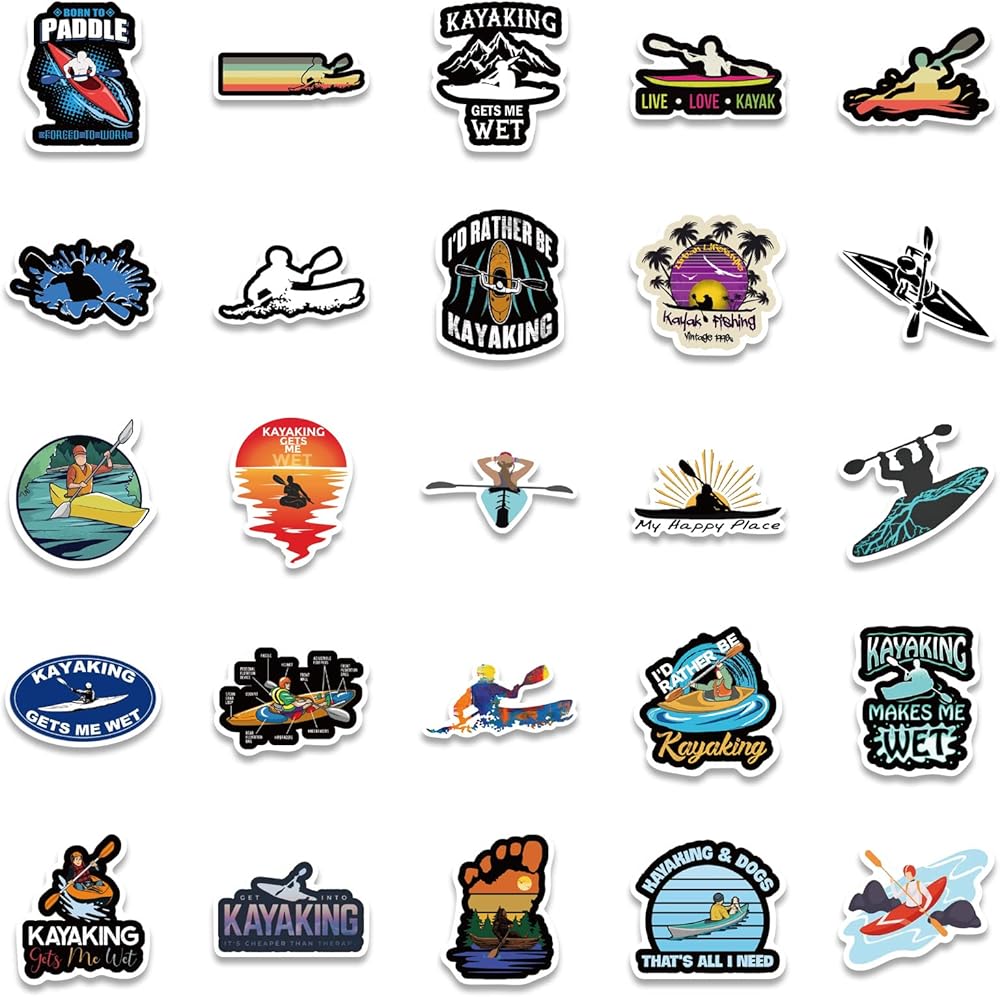 ملصقات كاياك - ملصقات كاياك مثالية للرجال، ومحبي الموسيقى، والنساء، والأطفال - مقاومة للماء، وفينيل متين - تعمل بشكل رائع على زجاجات المياه، أو الكمبيوتر المحمول، أو ملصق السيارة، أو كهدايا للحفلات (كاياك)