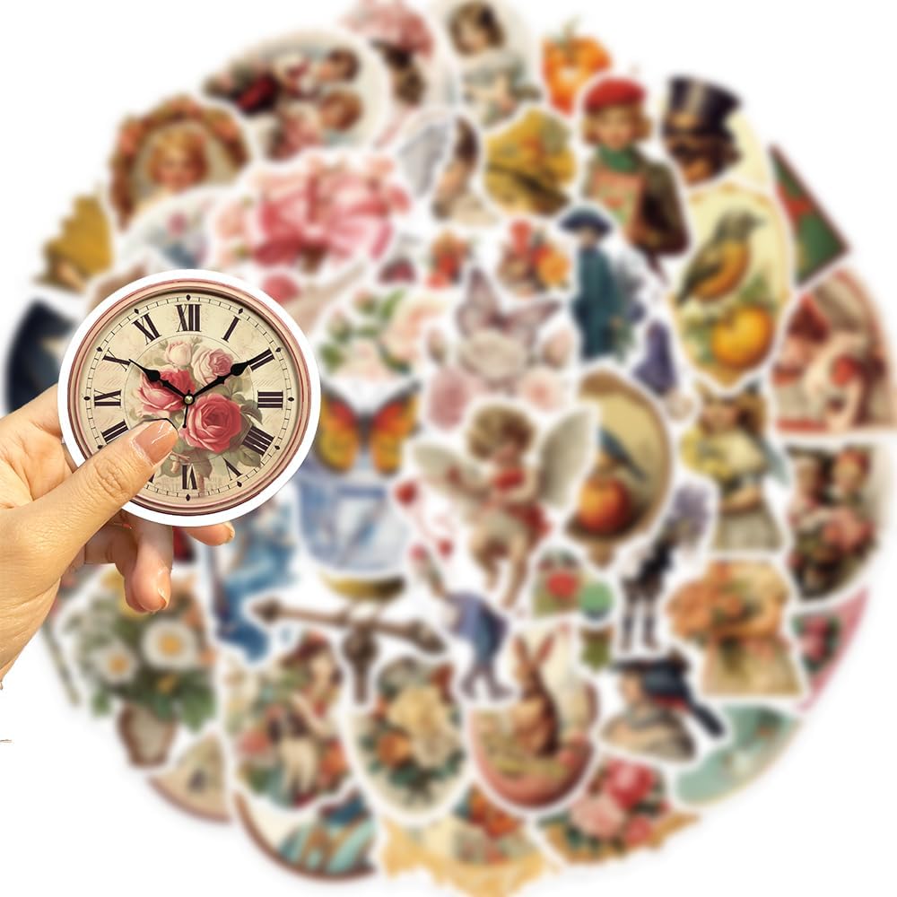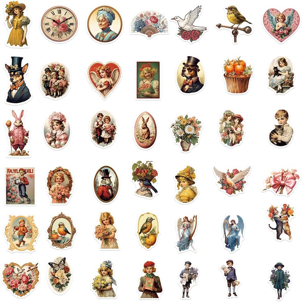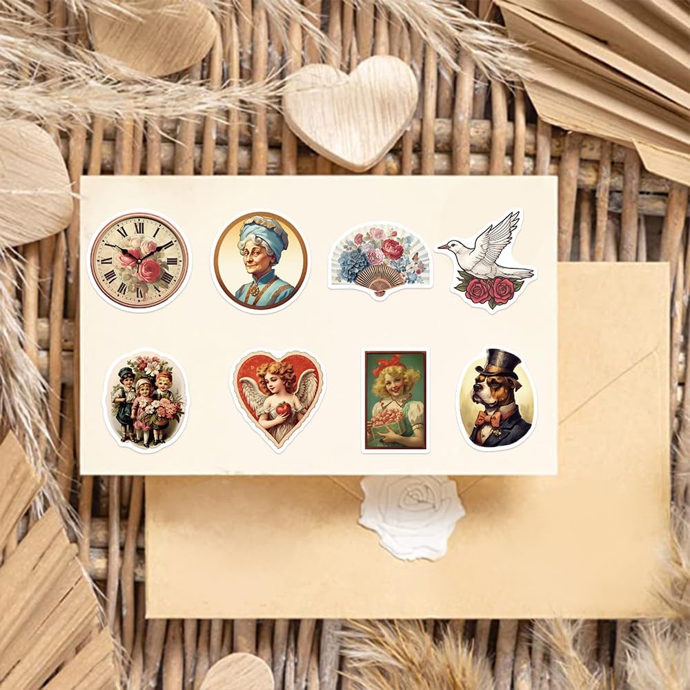 50 قطعة ملصقات عتيقة مقاومة للماء على الطراز الفيكتوري الرجعية ملصقات الكتابة على الجدران لزجاجة المياه المائية والكمبيوتر المحمول والهاتف المحمول ودفتر القصاصات ولوحة التزلج الجمالية من الفينيل للمراهقين والبالغين