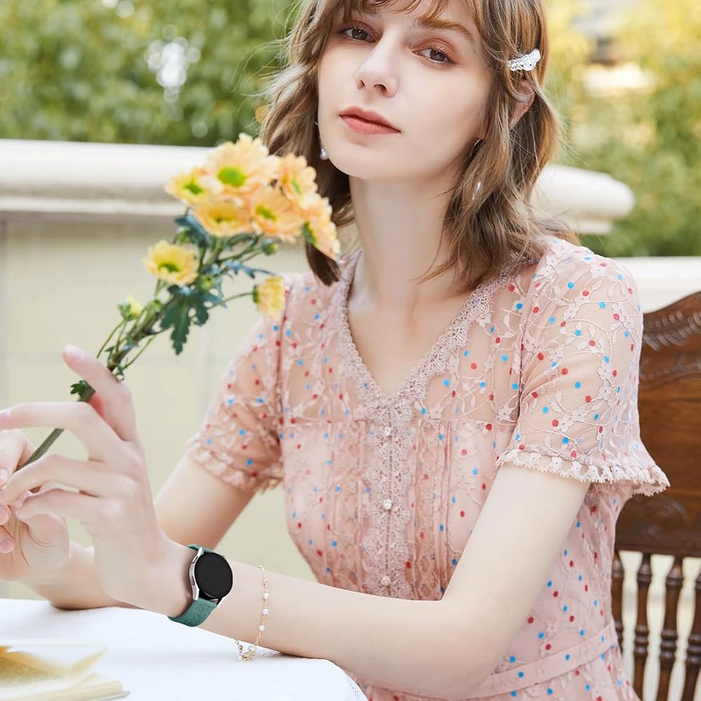 【ألوان متعددة وحجم واحد】السوار المنقوش بالزهور هو الإكسسوار المثالي لرفع مستوى مظهرك. تتميز ساعة Galaxy Watch 5 الأنيقة ذات النقش الزهري بمجموعة متنوعة من الألوان للاختيار منها، وهي أفضل هدية للنساء والفتيات والأصدقاء والعائلة في عيد الشكر، وعيد الأم، وعيد الميلاد، وعيد الميلاد، وعيد الحب. يأتي السوار بمقاس واحد، يناسب المعصم مقاس 5.5 بوصة - 7.6 بوصة (140 مم - 195 مم)، يمكنك ضبط الإبزيم المعدني والثقوب لتناسب مقاس معصمك