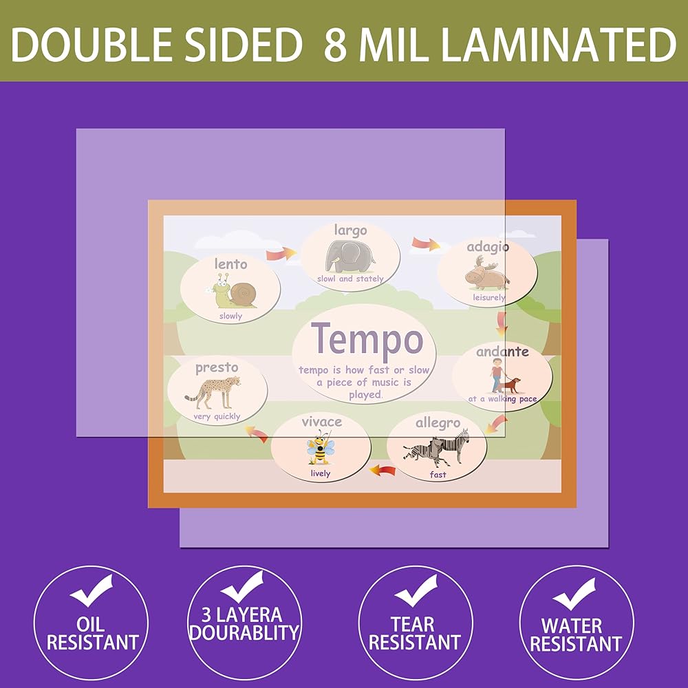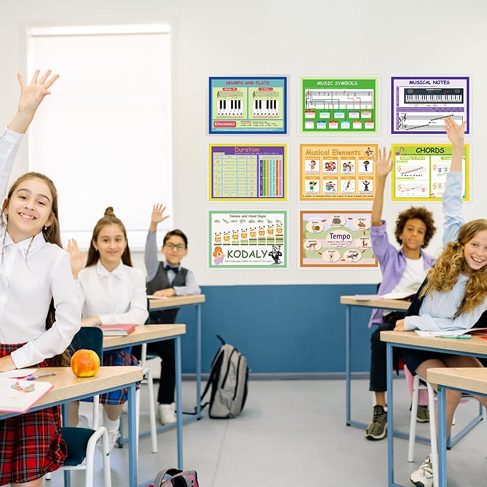 • ما تحصل عليه: مجموعة من 8 ملصقات موسيقية مغلفة (عناصر موسيقية، تيمبو، المدة، رموز الموسيقى، الأوتار، كودالي، النوتات الموسيقية، الأدوات الحادة والمسطحة) لتنظيم تزيين الفصل الدراسي. تساعد هذه الملصقات الطلاب على التعلم والمشاركة وتذكر أساسيات نظرية الموسيقى.