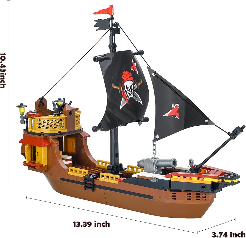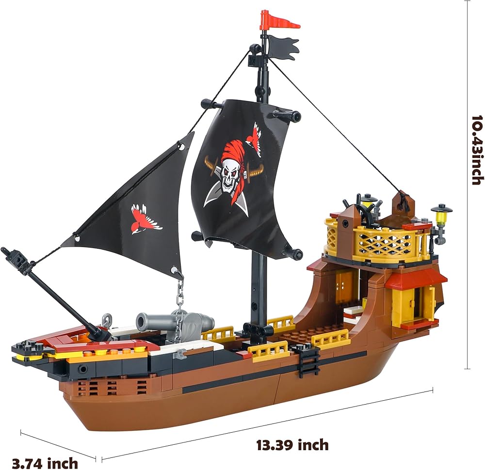 يبلغ مقاس سفينة القراصنة 13.39 (طول) × 3.74 (عرض) × 10.43 (ارتفاع) بوصة. إنه حجم مثالي لتزيين الغرفة. تشتمل كل مجموعة لعب على دليل تعليمات ملون. من السهل بناء نموذج لسفينة القراصنة باتباع الخطوات الواضحة.