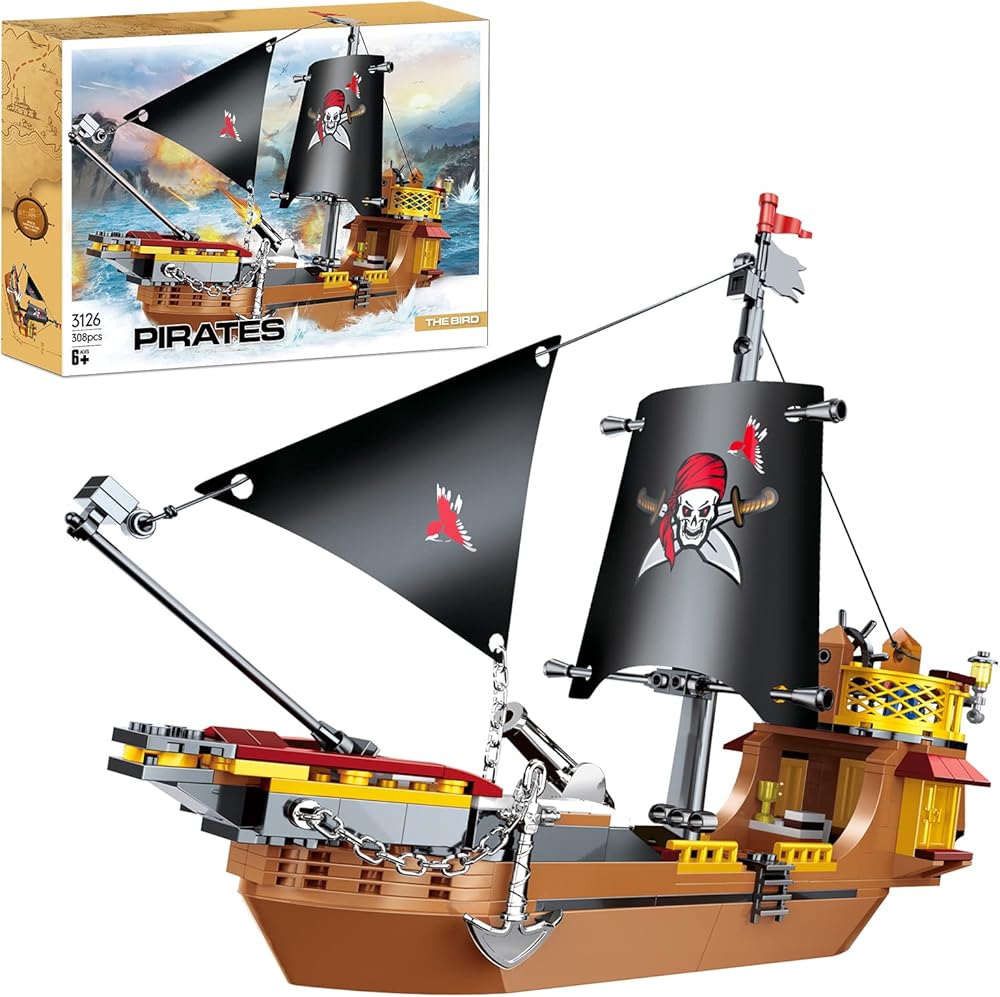 BRICK STORY القراصنة السفينة بناء مجموعات قارب وسفينة نموذج القراصنة اللعب اللبنات ألعاب سفينة القراصنة للبنين والبنات القراصنة مغامرة Playset هدية للأطفال الذين تتراوح أعمارهم بين 6-14 سنة، 308 جهاز كمبيوتر شخصى