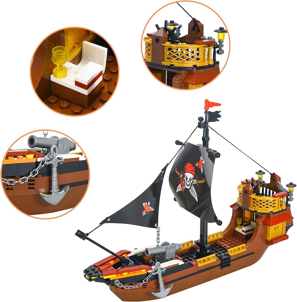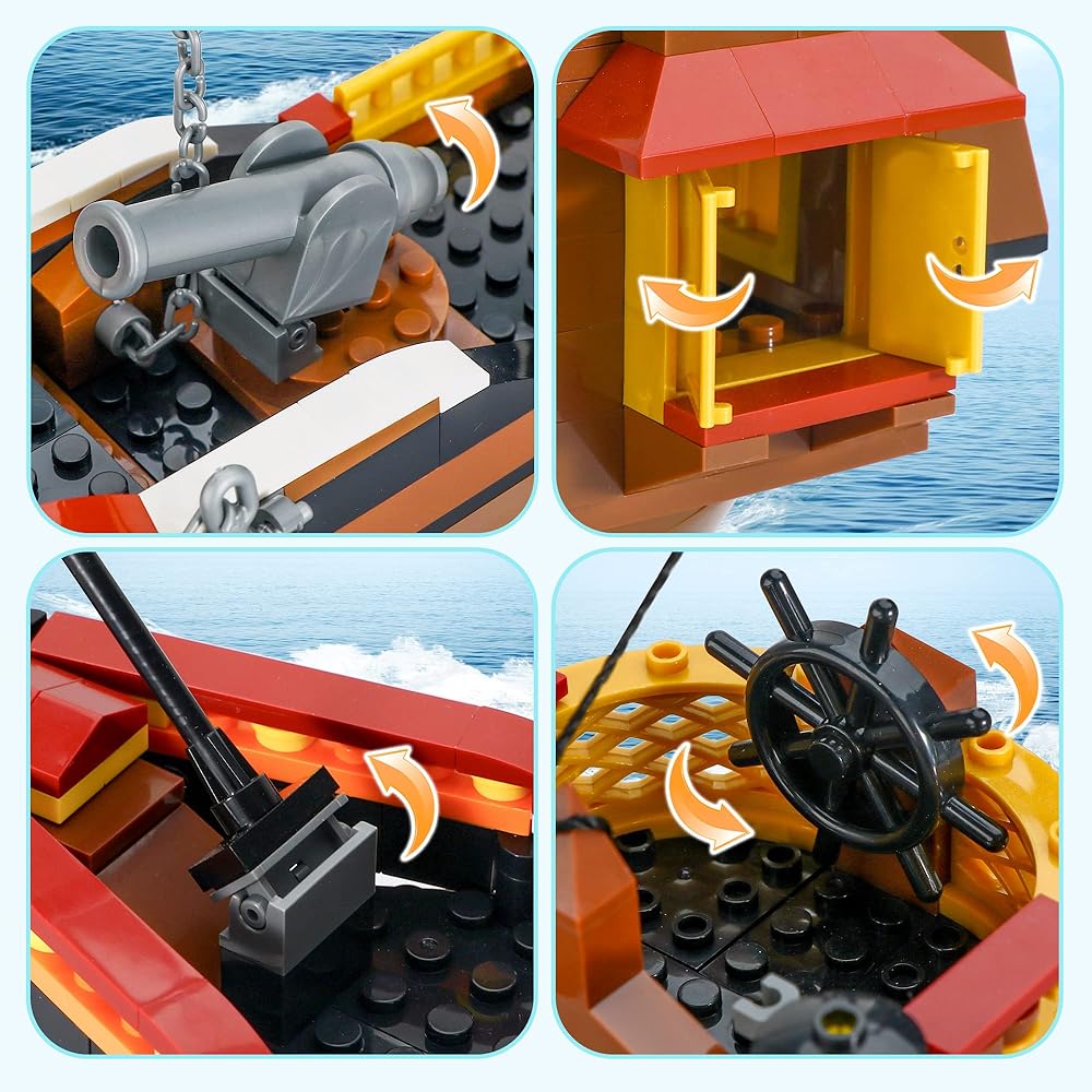 قم ببناء سفينة قراصنة رائعة مع علم القراصنة الجمجمة، ومدفع وصاري قابلين للتعديل، ودفة قابلة للدوران، ومرساة، ونوافذ قابلة للفتح والعديد من التفاصيل الواقعية. ستطلق لعبة سفينة القراصنة هذه خيال الطفل وتأخذه في رحلة إبحار غامضة. مغامرة بحرية مثيرة في انتظارك!