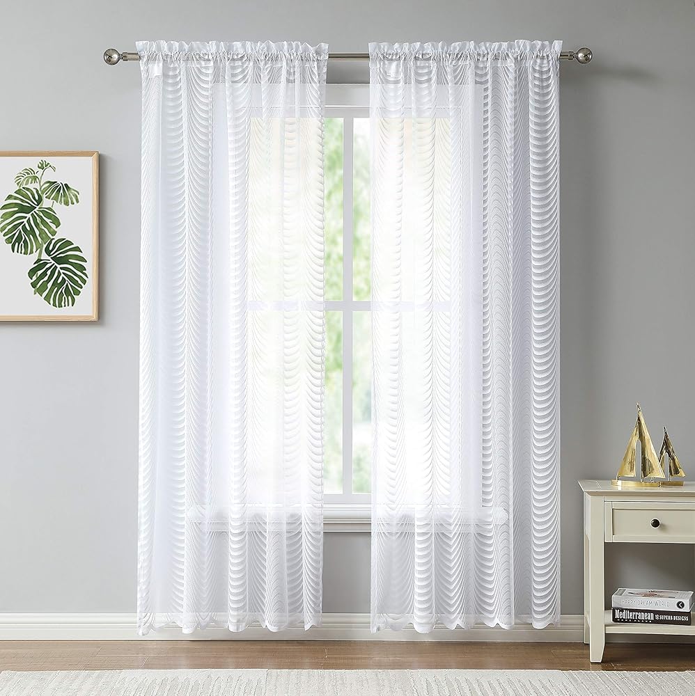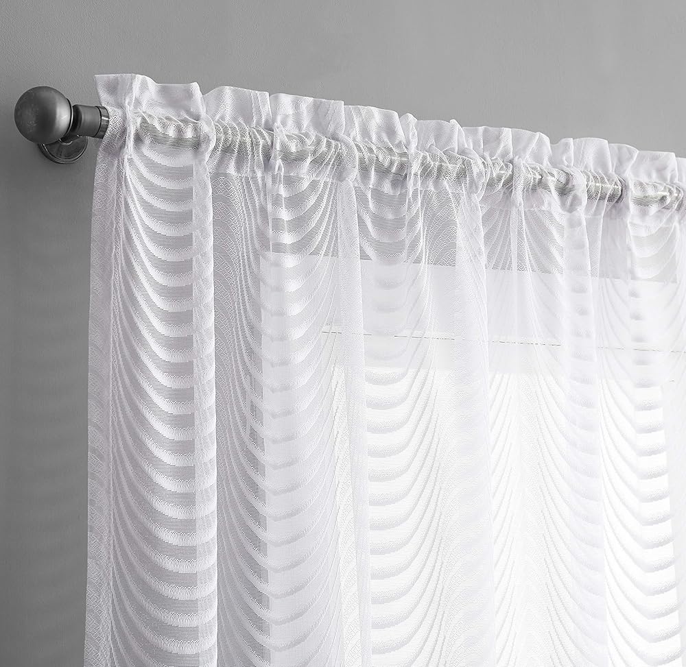 LinenZone - ستائر شبه شفافة من الدانتيل بتصميم موجات - مجموعة من لوحتين - ستارة فوال بجيب قضيب لغرفة المعيشة وغرفة النوم والمطبخ (لوحتان 54 × 72، بيج)