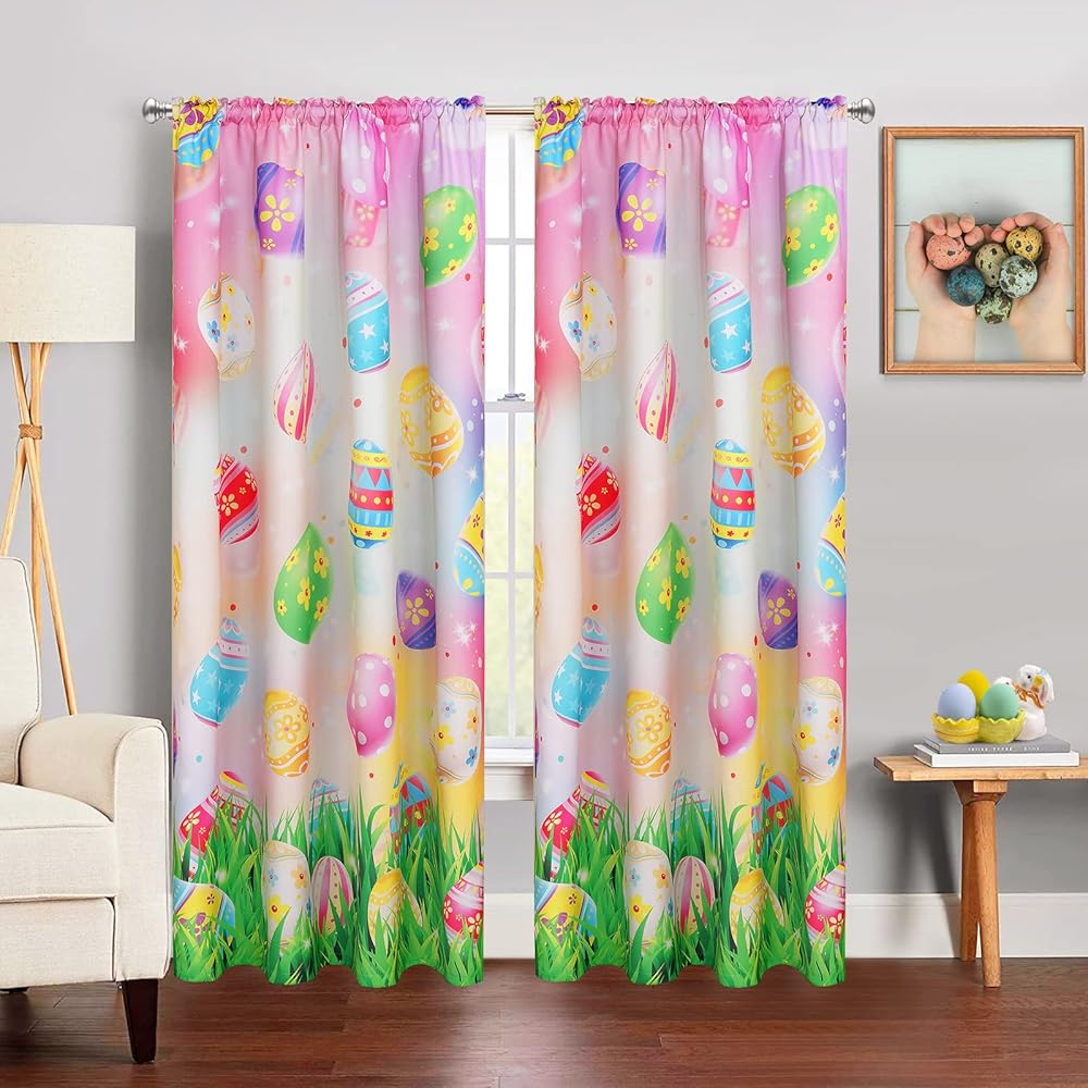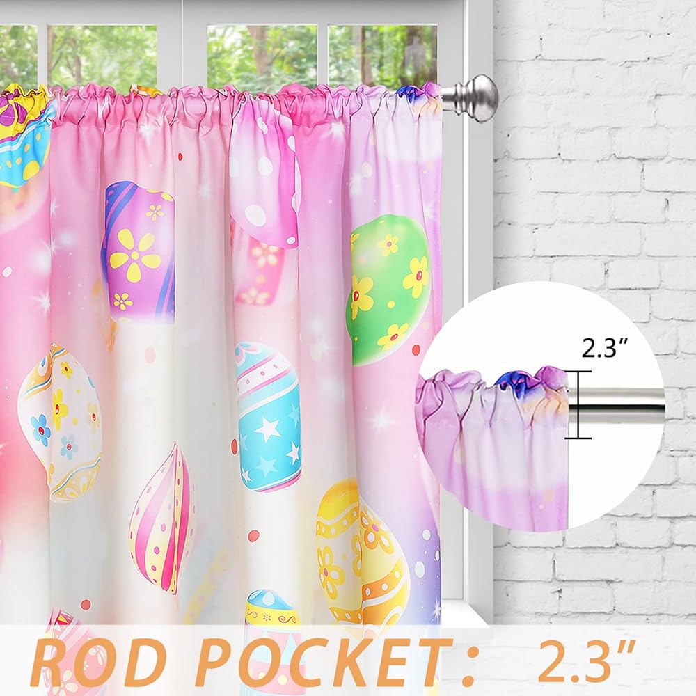 محتوى العبوة: لوحتان في كل عبوة. مقاس كل لوحة: 52 بوصة عرض × 63 بوصة طول (للعرض الإجمالي 104 بوصة). تأتي ستائر معالجة نافذة عيد الفصح هذه مع جيب قضيب يبلغ طوله 2.3 بوصة لسهولة التركيب ومناسبة لمعظم قضبان الستائر. كما أنها هدية دافئة للعائلة والأصدقاء وغيرهم.