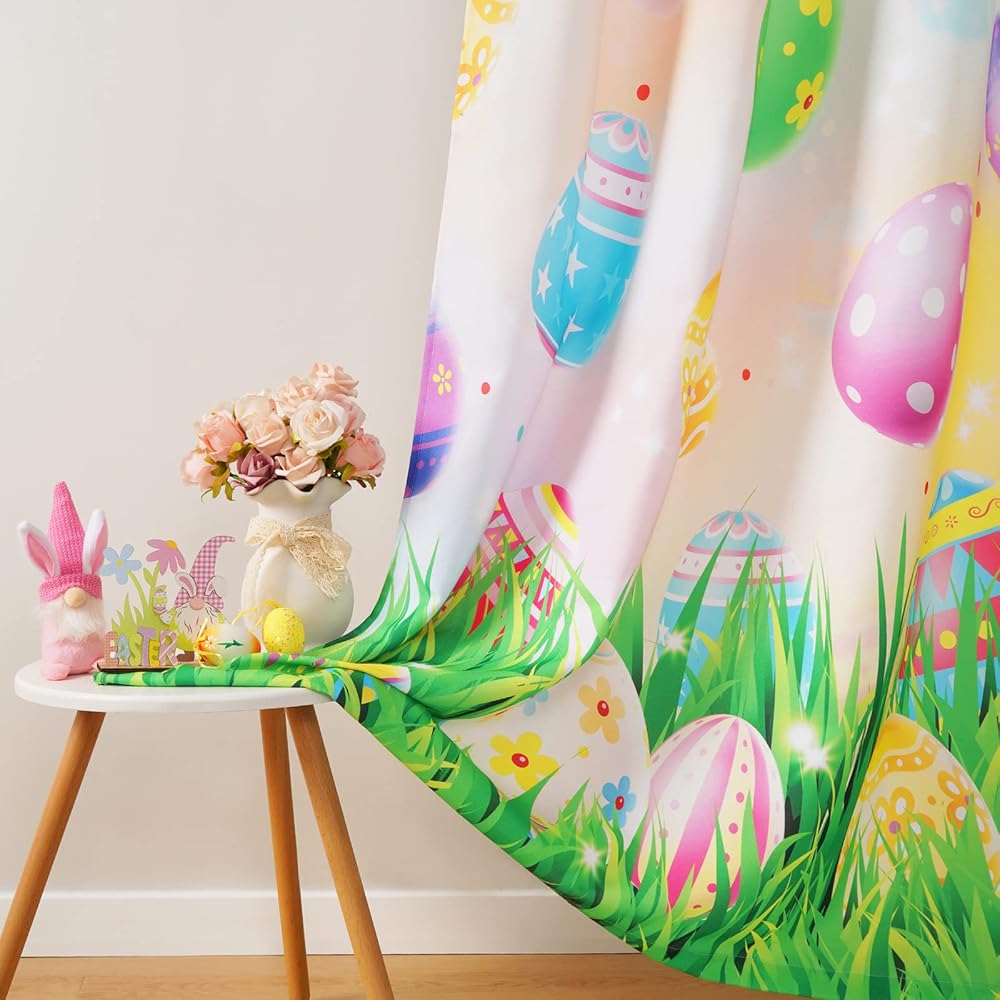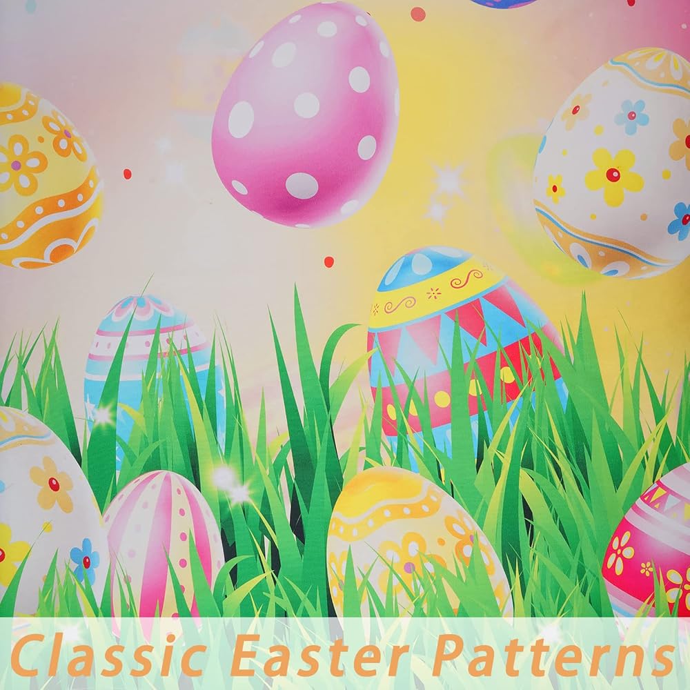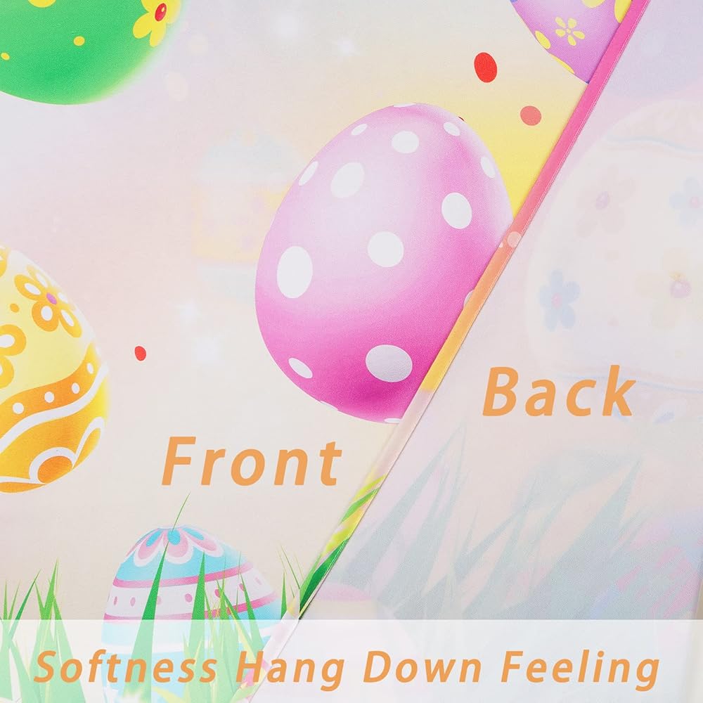 خامة فاخرة: ستائر بيض عيد الفصح هذه مصنوعة من البوليستر عالي الدقة. المواد الناعمة والمتينة تجعل الألواح أكثر ثنيًا وجمالية. ستائر عيد الفصح مصنوعة بحرفية عالية الجودة، ومقطعة بشكل أنيق، ولا تتآكل أو تتلاشى بسهولة.