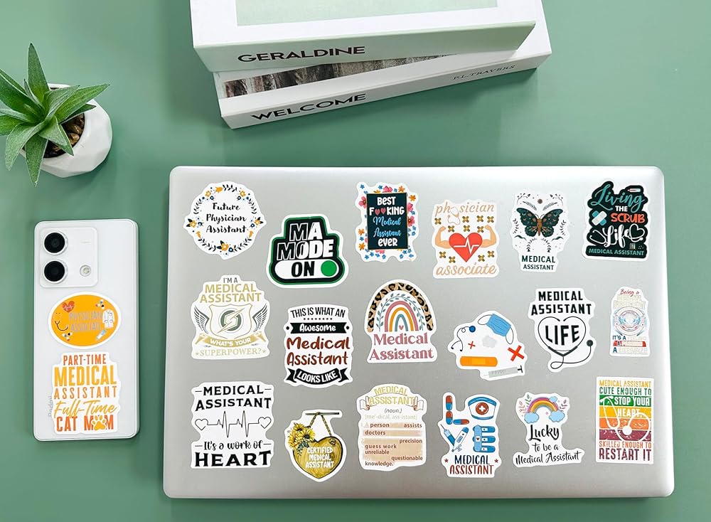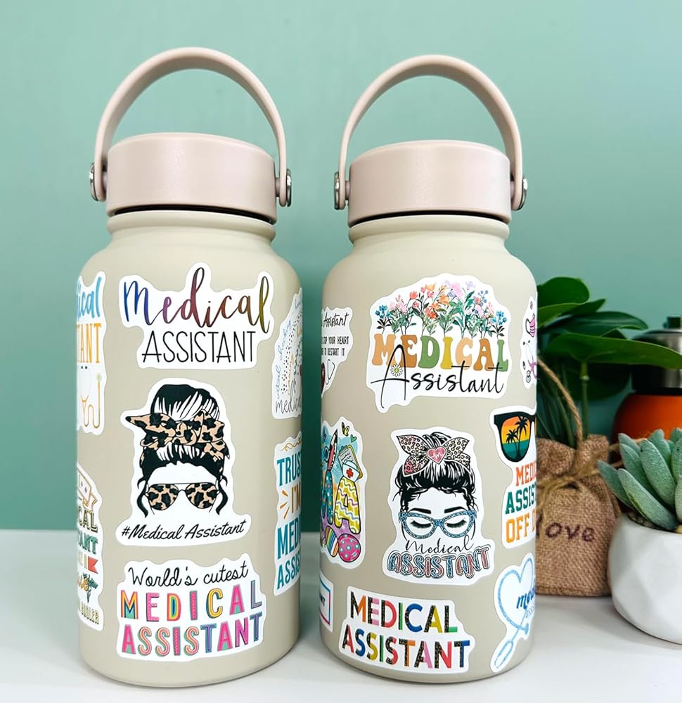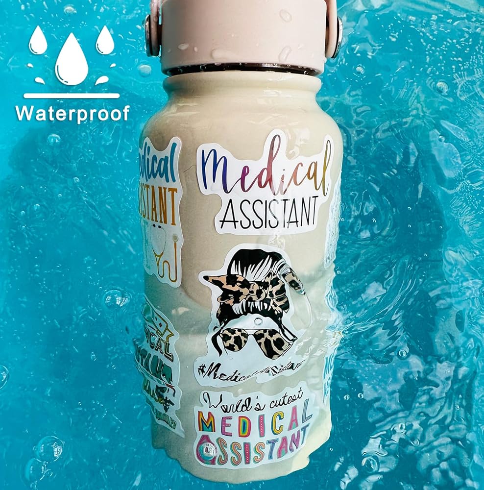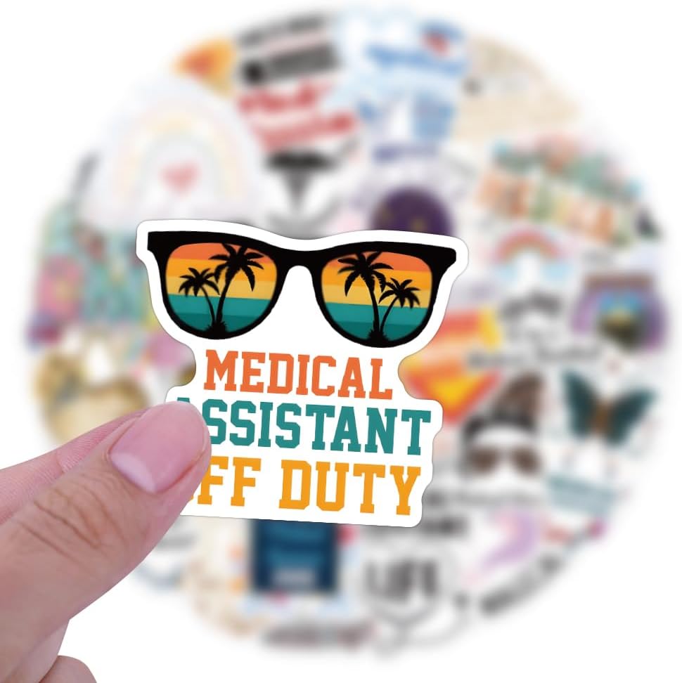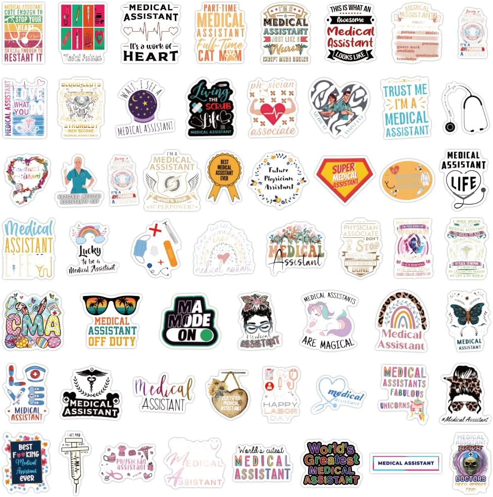 60 قطعة من ملصقات المساعد الطبي - ملصق لاصق مقاوم للماء من الفينيل لمساعد طبي لزجاجة المياه، والكمبيوتر المحمول، ودفتر القصاصات، ولوح التزلج، والسيارة، والأمتعة، والخوذة