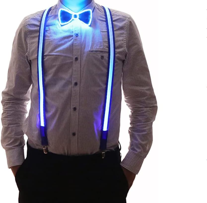 مقاس واحد يناسب معظم الأشخاص: ربطة عنق LED بطول رقبة قابل للتعديل يناسب معظم المقاسات. استخدم منزلق حزام الرقبة لضبط طول الرقبة. الحد الأدنى لمحيط الرقبة - 10 3/4 بوصة / الحد الأقصى لمحيط الرقبة - 18 1/2 بوصة. حمالات LED: العرض: 1 بوصة (2.5 سم)، الطول: حتى 46 بوصة؛ مقاس طول الحمالة قابل للتعديل بالكامل مع شريط تمرير مرن على القطعة التي تتصل بالجزء الخلفي من بنطالك.
