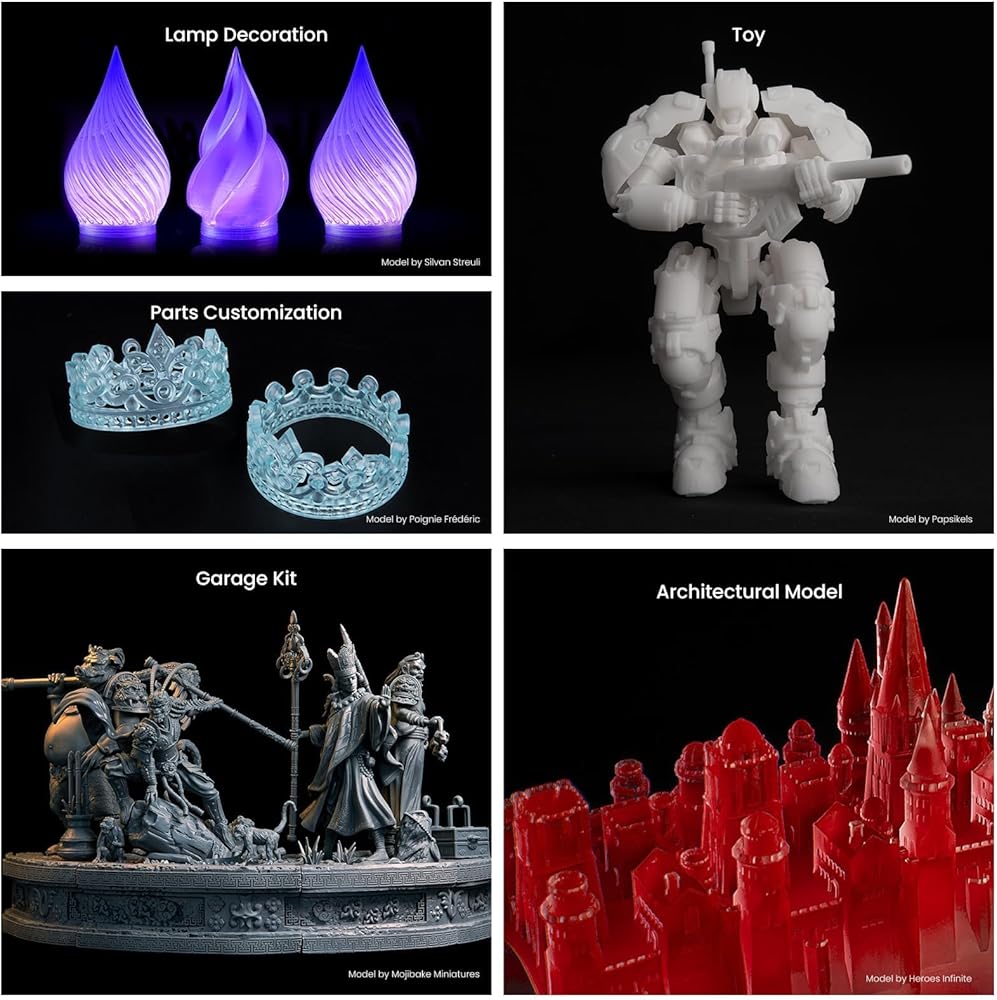 【ألوان زاهية ومذهلة】مع أصباغ عالية الجودة وبادئات الصور داخل راتنج المعالجة بالأشعة فوق البنفسجية من ELEGOO، تتمتع النماذج المطبوعة بالراتنج بتأثير لون نقي ومذهل تمامًا مثل العمل الفني.