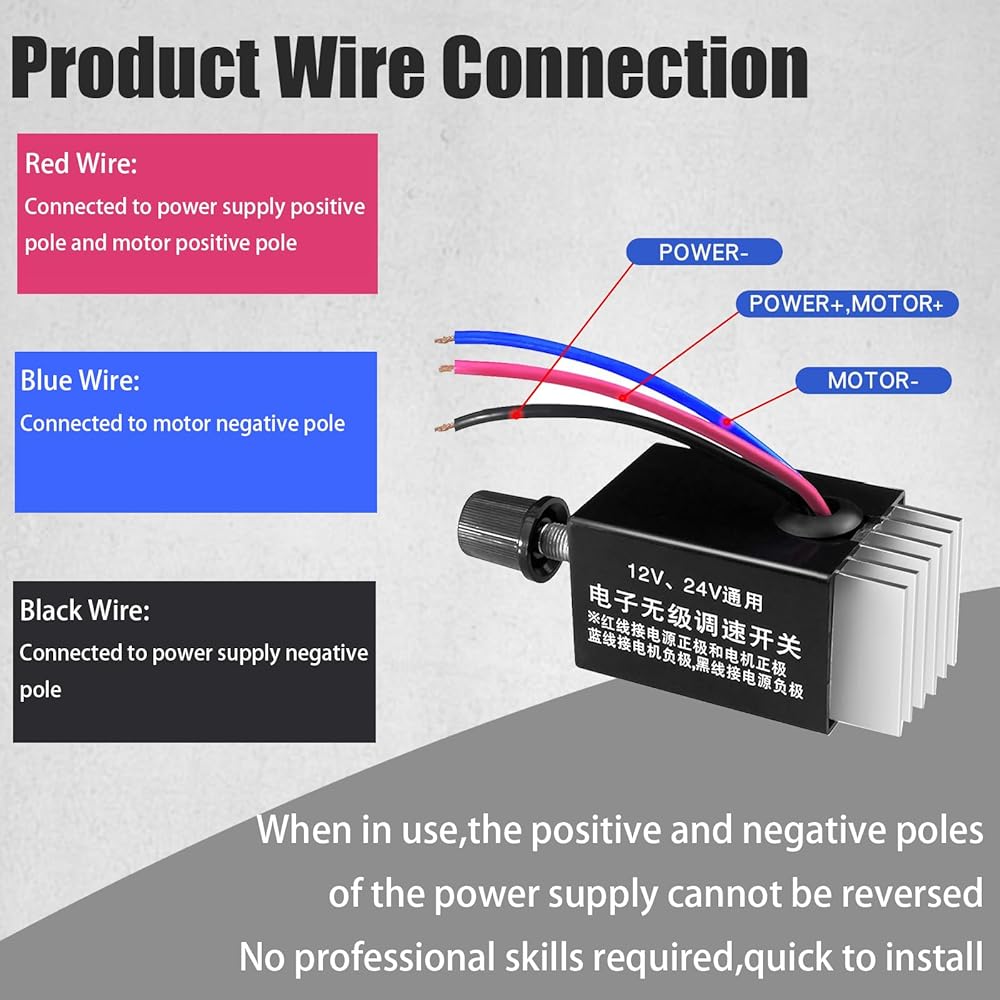 • 【جودة عالية】وحدة التحكم الإلكترونية في السرعة بدون خطوات هي وحدة تحكم مزودة بالحوض الحراري الذي يضمن تبديدًا أفضل للحرارة. سهل الضبط والتحكم في سرعة محرك التيار المستمر، ومقبض برغي مريح في الاستخدام.