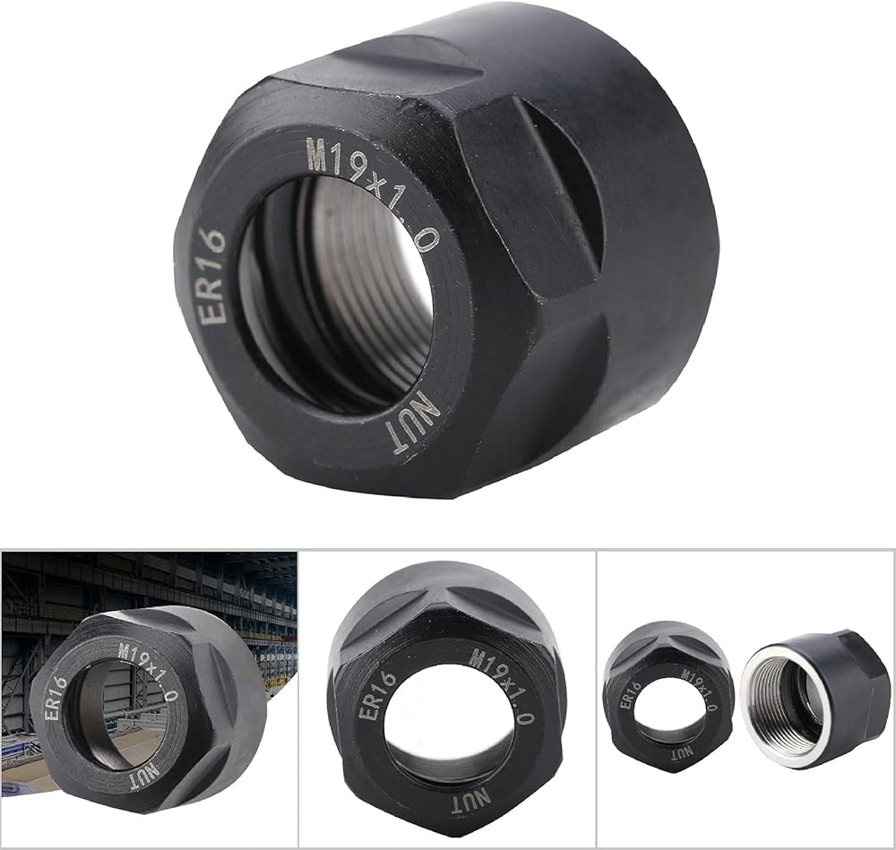 صامولة التثبيت، حامل ظرف الطحن من الفولاذ 42crMo من الفولاذ عالي الصلابة لساق الأداة (أسود، ER16 خارجي A داخلي نوع M M19*1.0)