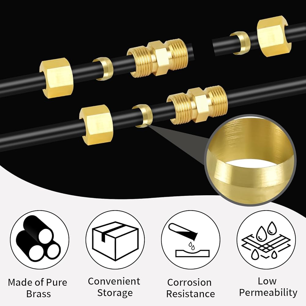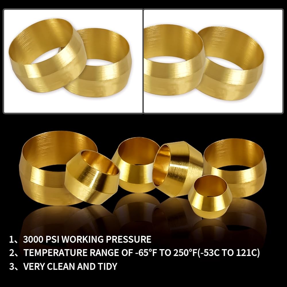 [جودة ممتازة] حلقات الأكمام الضاغطة MuHize مصنوعة من النحاس ولكن مادة خفيفة الوزن وصلابة جيدة، وقوة عالية، وتتميز بمقاومة التآكل ومقاومة التآكل، ومقاومة ضغط قوية، كما أنها سهلة التجميع جدًا. أداء إغلاق جيد، لا يوجد تسرب.