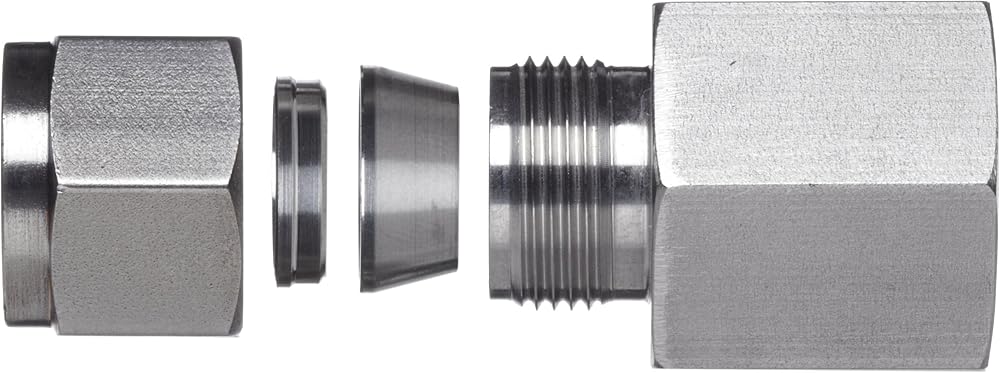 - يتصل تركيب الضغط للتوصيل بالأنابيب أو الأنابيب من أحد الطرفين ويحتوي على موصل أنثى NPT من الطرف الآخر