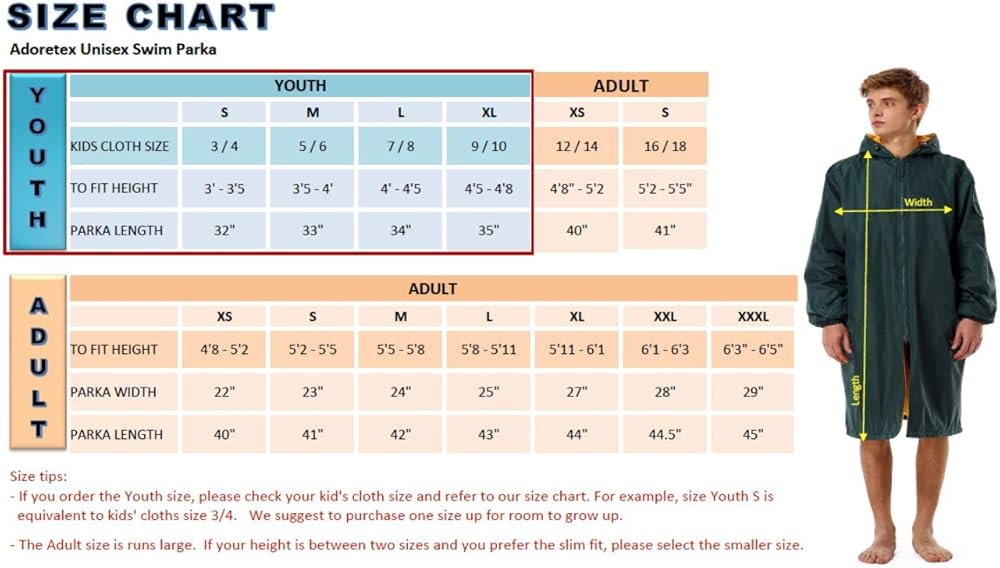 • ✅ ضمان الجودة: من الغلاف الخارجي إلى البطانة الداخلية وسحاب YKK. تعتبر سترة Adoretex Swim Parka هي سترة الرياضة الأكثر شعبية. جيد للسباحة وكرة القدم وكرة الماء والرياضات الأخرى.