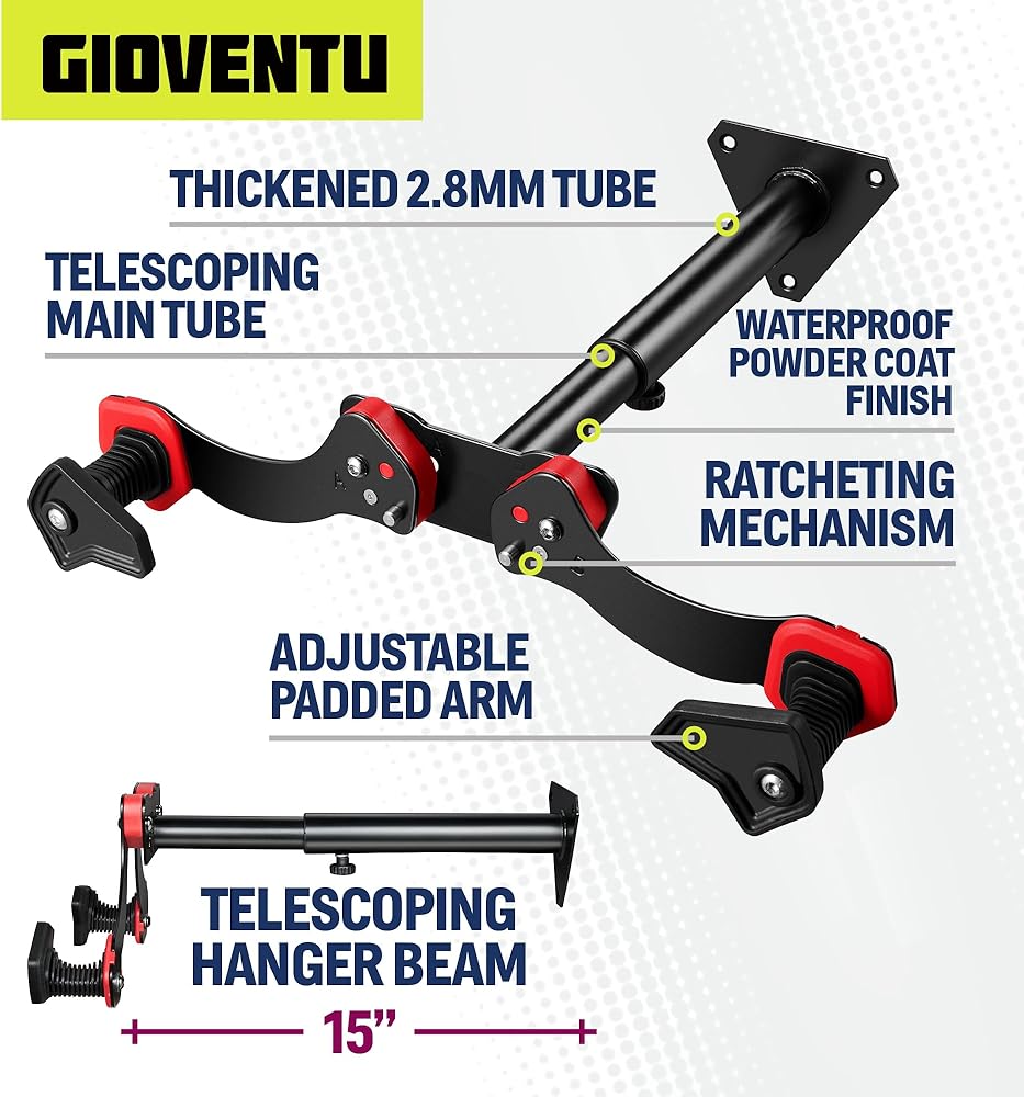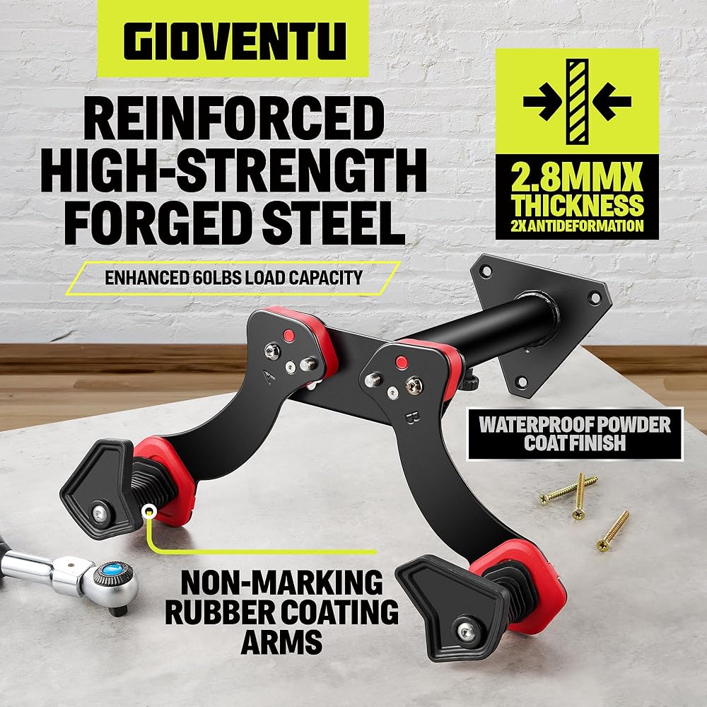 [سعة تحميل محسّنة تبلغ 60 رطلاً]: تم تصميمه من الفولاذ المشكل عالي القوة ومعزز بأذرع معززة، يضمن رف الدراجة هذا ثباتًا موثوقًا به، ويدعم أوزان تصل إلى 60 رطلاً. بالإضافة إلى ذلك، فإن طبقة الطلاء المسحوق المتينة تحمي من التآكل.