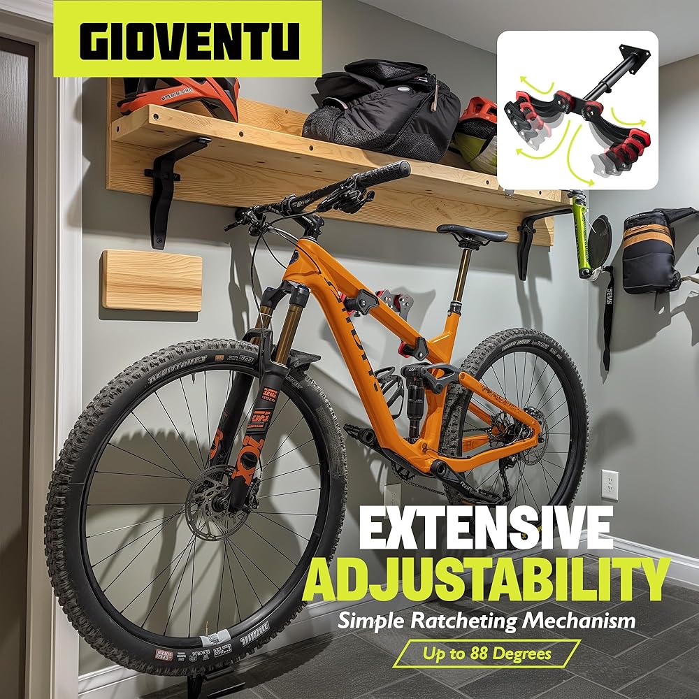 مرآب حامل الدراجة على الحائط (بحد أقصى 60 رطلاً)، شماعة حائط أفقية للدراجة مصنوعة من الفولاذ عالي القوة، أذرع قابلة للتعديل، حامل دراجة لتخزين الدراجات على الطرق أو الجبال أو الدراجات الهجينة